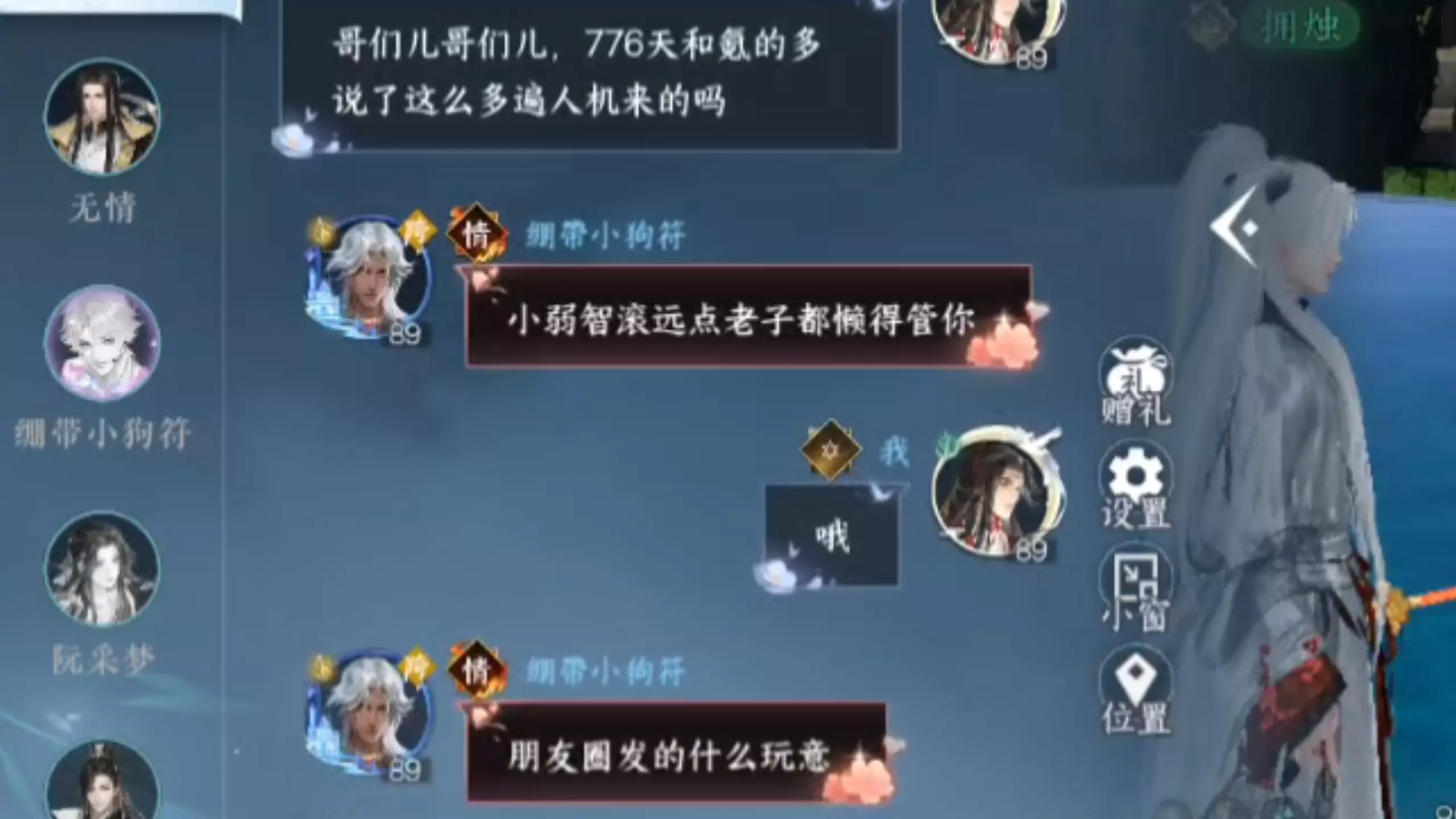 起因是跟闺蜜一起玩迷局,她盗猎人,刀了一个提刑官,最后好人赢了,事后那个提刑官就私聊我闺蜜骂她,拿游玩天数和氪条说事,遂气不过开始吵架,吵到后面对面还拿ip说事…