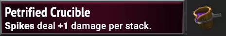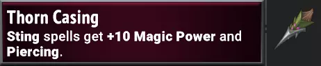 【+】将刺击的伤害提升超过一倍,因此如果刺击是你策略的一部分,这会非常有帮助。若与荆棘外壳和/或荆棘果实搭配使用,效果会非常好。