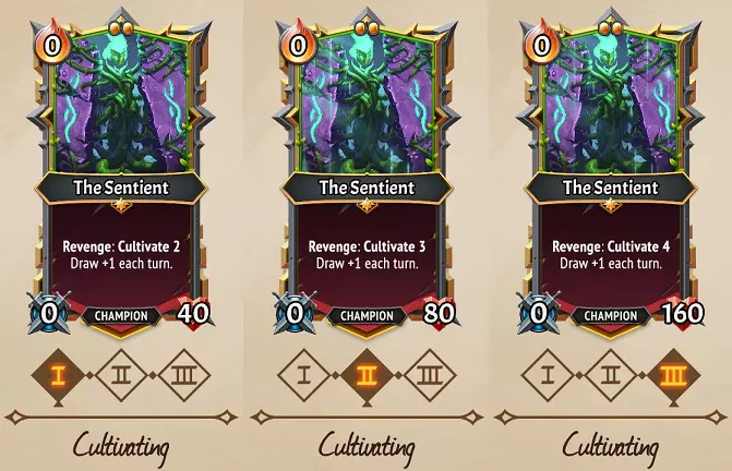 培育:为虚弱盟友的属性施肥,每点培育值可为场上当前生命值最低的单位提供+1/+1的攻击力和生命值。此效果的特性导致培育的【目标】在战斗中会不断变化,这可能是因为某个单位失去了生命值,或是因为培育提升了另一个单位的生命值,使得场上出现了“新的”生命值最低单位。由于这些是对盟友属性的直接加成,请注意:如果单位是无尽或重生状态,这些属性加成将会保留。 另外,在有培育者的楼层使用支援(非旗帜)单位时要小心,否则你可能会提升弱小支援单位的生命值和攻击力,而非你的主力攻击队伍。对于像赞美诗吟唱者、月之精灵或干扰者这类关键支援单位,保持其存活可能仍有价值,但如果是为一次性的墓穴单位或小鬼单位施加增益,就可能显得有违常理。