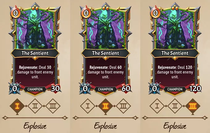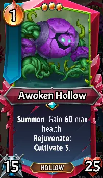 Overview: The wildwood exists even in the depths of hell, and the will to live is strong among those that call it their home! The Awoken lean heavily on stat gains, card draws, ember generation, and healing for support, largely eschewing offensive Spellcasting strategies in the process. They have an unparalleled ability to snipe, spike, and sweep their way through enemy backliners, making them fantastic allies for clans that lack these abilities. The potency and quantity of their Healing spells is the strongest of all clans, helping them patch up even the most grievously wounded allies. They lack any unique buff or debuff effects however, so if you’re used to winning by stacking tons and tons of status effects, Awoken will force you to change up your strategies a bit! Offensive strategies: Awoken mostly solve their problems directly, with Spells, Abilities, and Triggers all based around gaining Attack stats to escalate their damage, or simply hardening their defenses with Spikes to counter-strike their foes. Sweep & Spike damage is plentiful in this clan, making them fantastic for dealing with enemy backliners. They have a few specific strategies unique to a Champion path or Rare unit that can get them additional damage through tricks like Rejuvenation or spamming 0-cost Sting spells, and one Heal spell that also damages enemies… but largely their spells aren’t going to pack much offensive power compared to most other clans. Defensive strategies: Healing & Regen is everywhere in this clan, which just happens to pair well with its numerous ways of gaining Health stats in battle. They generally lack ways to block damage, instead anticipating incoming damage to be Healed off later, or deliberately taking hits for Revenge & Spikes to take effect. The Heals are powerful and spammable in this clan, so Awoken loves having High-Health meatshields among its ranks to take lots of punishment. Stat-influencing strategies: The most of any clan in the game, between Awoken Spell cards, units that gain Attack on Revenge/Slay/Rejuvenation, and their unique Cultivate effect, Awoken is fantastic at increasing both the Attack and Health of units. Though some of these are exclusive to Awoken, many can be shared with any clan’s units, opening up some fun strategic combos. The Endless upgrade can be particularly great with this clan, as stat changes carry over to Endless units upon defeat. Support strategies: Draws, Draws, more Draws, and also some Ember! Card draw effects are everywhere in this clan, dwarfing Underlegion’s comparative focus on them. Many of these are also accomplished with Cheap, low-Ember Spells meant to be easily spammed. On top of that, multiple cards and even a rare unit help generate Ember, giving you ample opportunities to play other cards. Interestingly, Awoken largely lacks expensive Ember cards, so most of these effects will go toward either playing another clan’s cards, or simply playing the numerous cards you’ve drawn! Sweep/Backliner Strategies: The will of the vines stretch through all layers of enemy lines, and no enemy is safe from their spread of rampant green! Two traditional Sweep units, a Champion that sweeps, Spikes on another Champion, Spikes available in Spell cards & the Merchant of Steel, and even an Uncommon unit that can selectively snipe away the backliners. If somehow that weren’t enough, they have some Common spells that can target individual enemies, or do AoE damage. Easily the clan with the most options available for dealing with those pesky backliners. If you’ve read all that and come to the conclusion that they don’t have any weaknesses… well, kind of. They’re not bad at any one of these outlined aspects, and personally I find them to be very strong after the recent buffs to clans. However, there’s a few things to consider here. One is scaling, because they don’t have a unique debuff or buff, rapidly escalating their offensive prowess just isn’t as easy as it is for some other clans. They have no equivalent of something simple-but-strong like a Dualism Cheery Deathcap to put tons of debuffs on enemies, nor do they have something that buffs entire floors of allies like a Moon Pixie or Fledgling Imp. The other concern is Healing without Armor/Shields/Blocking doesn’t always work in this game – you may have to utilize multiple Health-gaining units & effects to make that viable defensively as the game progresses. Finally, its Support units are very tame compared to other clans, so don’t expect nearly as much of them as you might be used to with other clans! Awoken Cards Changed from Monster Train 1 Note: Monster Train 2 has a significant escalation in enemy Stats, so the majority of MT1 cards have had adjustments to increase their potency. This section only focuses on cards that have gained new functionality, new restrictions, or changed their properties entirely.