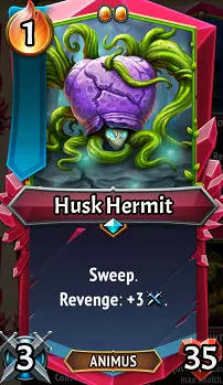 壳隐士:苏醒者中的两位横扫者之一,壳隐士更偏向坦克定位,拥有高达35点的生命值,与尖刺 puffball 相当。它在受到伤害触发复仇效果时会获得+3攻击力,随后为你横扫后排敌人。无论置于后排还是前线,横扫者都十分有用,但大多数横扫者生命值极低,且缺乏这种灵活性。因此,壳隐士是个极佳选择,你可以根据当前战斗的需求将其向不同方向培养。 升级/搭配:如果你希望打造一个能通过横扫伤害惩罚敌人的前排坦克,那么【巨石】、【泰坦石】甚至【无尽】都会非常有用,因为复仇效果获得的攻击力在其被击败后仍会保留!如果你想快速解决问题,速度石和多重打击是很不错的选择。力量石也相当好用,可以提高初始攻击力,不过觉醒者还有其他几种提升攻击的方式。他的进攻型对应技能【破碎外壳(U)】在这套构筑中表现更佳,但你不一定能抽到多个清扫者,所以这就取决于你希望如何培养他了!另外提醒一下,由于他有35点生命值,如果你的坦克生命值较低,他可能不会被重点培养;如果与其他低生命值盟友(比如魂灵攻击者)搭配,那肯定不会被重点培养。最后,尖刺并非必需,因为他通过伤害进行清扫,但尖刺和清扫的组合有助于剥离敌人的复活层数,所以这里仍有价值。