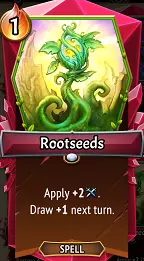初始卡牌:根种。作为《怪物火车》中绝对顶尖的初始卡牌之一,如今它的表现只能说…还不错!它与一代相比完全没有变化,提供的+2攻击力在敌人生命值普遍提升的情况下显得没那么重要了。部署阶段也让玩家可以选择使用“更小”的卡组,这意味着你不再总是迫切需要抽牌。根种依然很有用,尤其是当你抽到沃拉的音叉时,但在《怪物火车2》中,我弃掉它的频率比在一代中高得多。