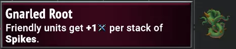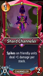 比扭曲之根好得多,它能有效使尖刺伤害翻倍,由于它会影响所有攻击尖刺单位的敌人,因此效果更为强大。本质上是一个【R】碎片引导者,但仍可与碎片引导者叠加。对于活化荆棘、【U】荆棘洼地以及拉撒路联盟的尖刺效果来说非常出色。