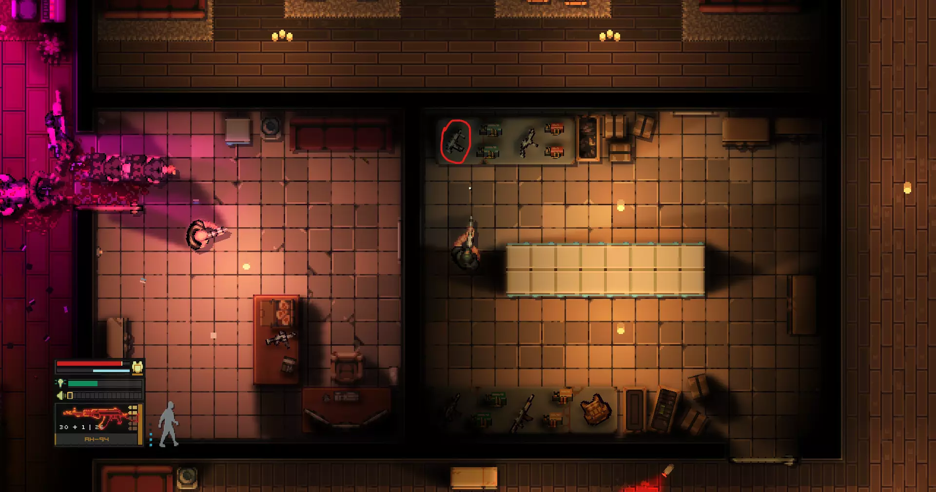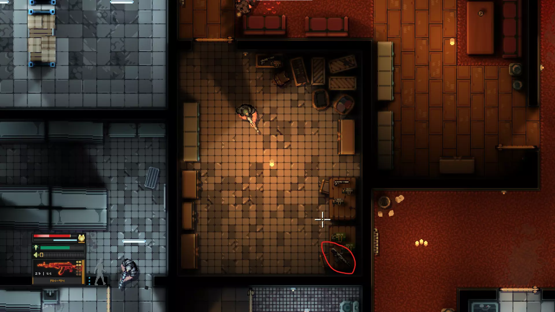 配备有特殊的后坐力减轻系统,能让射手以更高的精度进行射击。如何找到:进入“终章”任务,沿着主路走到十字路口后右转,向东走直到看到东南方向带武器室的房子。进入房子后,可通过撬门或钻通风管道进入武器室,AK-107位于武器室远端角落的桌子上。此外,AK-107也在西北方向的武器仓库上层。第5点 武器库的第2张截图在第6点下方