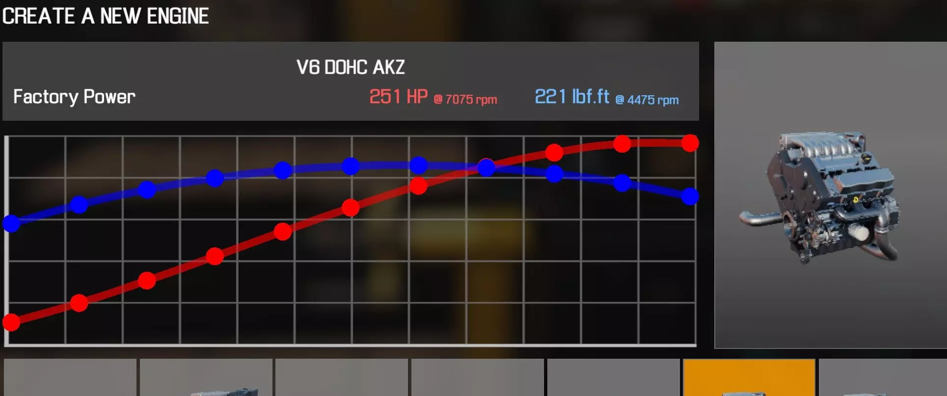 【从主商店购买的零件】 【从电子商店购买的零件】 【调校商店提供性能版本】 皮带张紧器 凸轮齿轮 x4 凸轮轴A(V6 DOHC AKY)x2 凸轮轴B(V6 DOHC AKY)x2 凸轮轴盖A(V6 DOHC AKY)x2 凸轮轴盖B(V6 DOHC AKY)x2 离合器片 离合器压盘 离合器分离轴承 曲轴(V6 DOHC AKY) 曲轴轴承盖 x2 曲轴皮带轮(V8) 发动机缸体(V6 DOHC AKY) 发动机缸盖A(V6 DOHC AKY) 发动机缸盖B(V6 DOHC AKY) 发动机缸盖罩A(V6 DOHC AKY) 发动机缸盖罩B(V6 DOHC AKY) 排气歧管A(V6 DOHC AKY)x2 飞轮 燃油滤清器 燃油导轨(V6 DOHC AKY) 惰轮A x3 惰轮Roller B进气歧管(V6 DOHC AKY) 机油滤清器(V8) 油底壳(V6 DOHC AKY) 活塞环×6 带连杆活塞×6 动力转向泵(V6 DOHC AKY) 蛇形皮带A(V6 DOHC AKY) 节气门(V6 DOHC AKY) 正时前盖A(V6 DOHC AKY) 正时前盖B(V6 DOHC AKY) 正时前盖C(V6 DOHC AKY) 正时后盖A(V6 DOHC AKY) 正时后盖B(V6 DOHC AKY) 水泵(V6 DOHC AKY) 【发电机】 【点火线圈×6】 【火花塞×6】 V6 DOHC AKZ