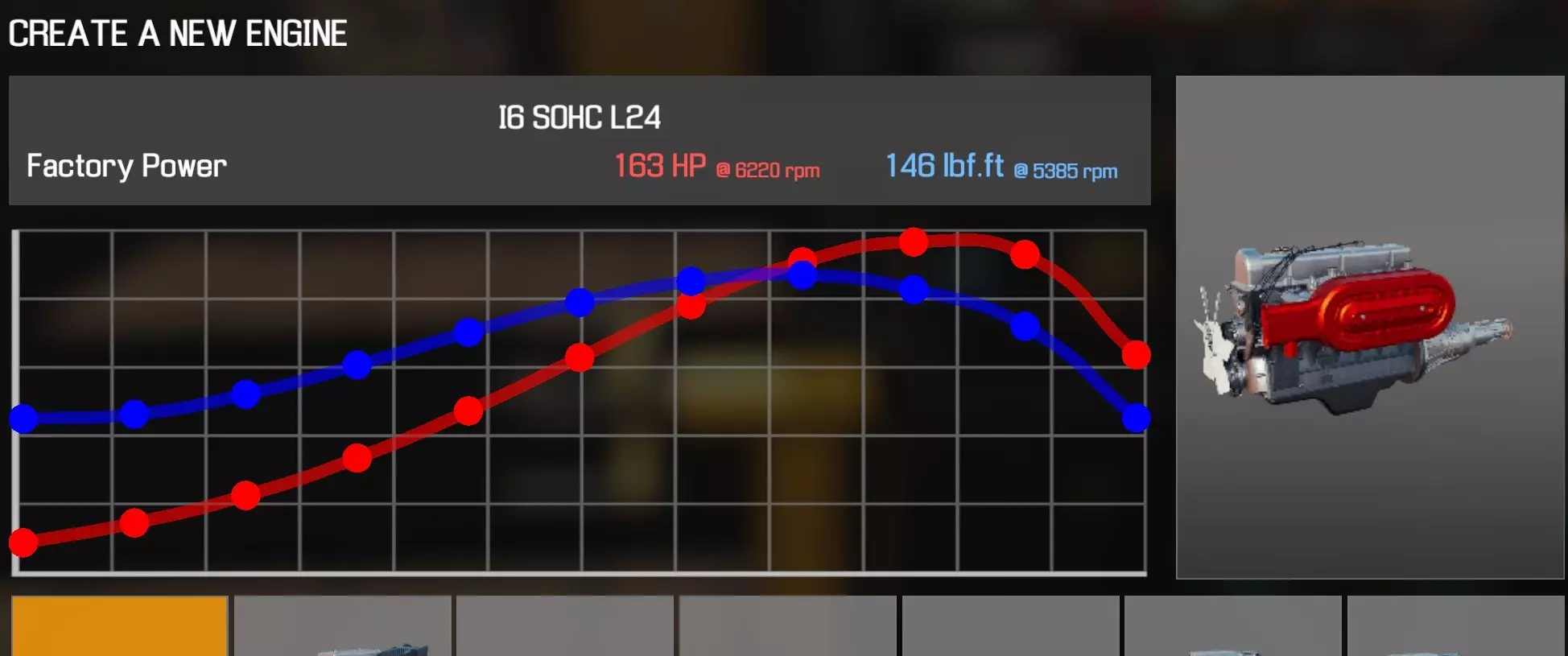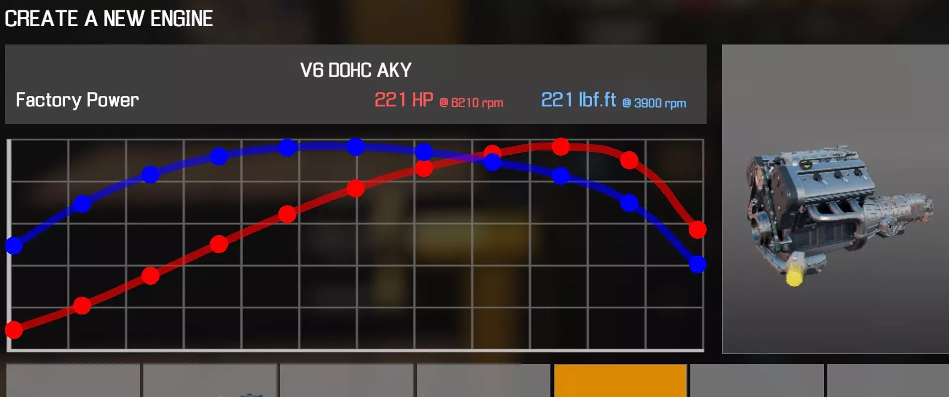 【从主商店购买的零件】 【从电子商店购买的零件】 【调校商店提供性能版本】 臂(V6 B) 皮带张紧器 凸轮齿轮(V6 B)×4 凸轮轴(V6 B)×4 凸轮轴轴承(V6 B)×4 离合器片 离合器压盘 离合器分离轴承 曲轴(V6 B) 曲轴轴承盖×2 曲轴皮带轮(V8) 发动机缸体(V6 B) 发动机缸盖A(V6 B) 发动机缸盖B(V6 B) 发动机缸盖罩A(V6 B)×2 发动机缸盖罩B(V6 B) 发动机缸盖罩C(V6 B) 排气歧管(V6 B)×2 飞轮 燃油滤清器 燃油导轨(V6 B)×2 惰轮A×5 惰轮B 进气歧管A(V6 B) 进气歧管B(V6 B)机油滤清器(I6) 油底壳(V6 B) 活塞环×6 带连杆活塞×6 动力转向泵(V6 B) 蛇形皮带A(V6 B) 蛇形皮带B(V6 B) 节温器(V6 B) 节气门(V6 B) 正时盖A(V6 B) 正时盖B(V6 B) 正时盖C(V6 B) 水泵(V6 B) 【发电机】 【点火线圈×6】 【火花塞×6】 V6双顶置凸轮轴CHG