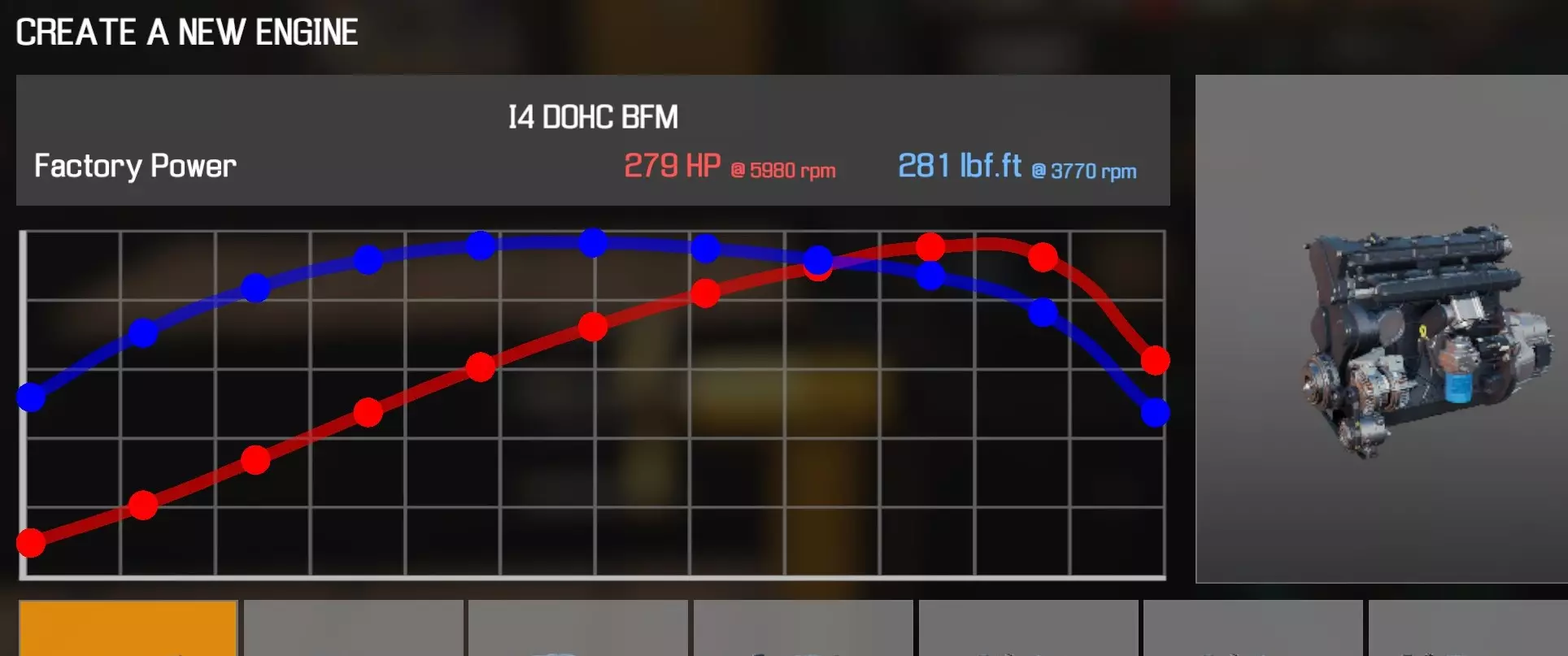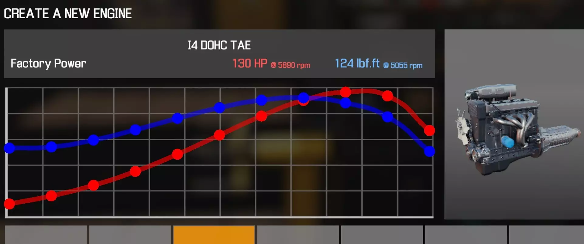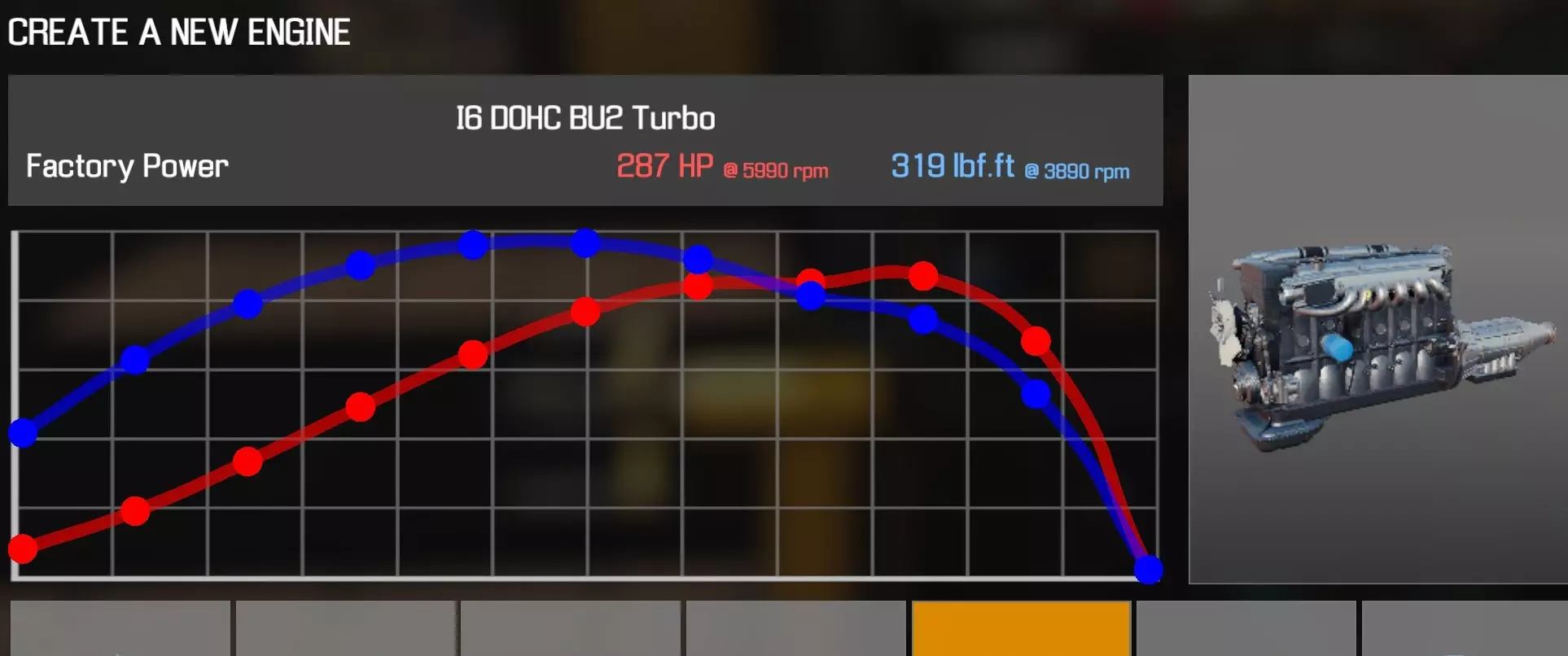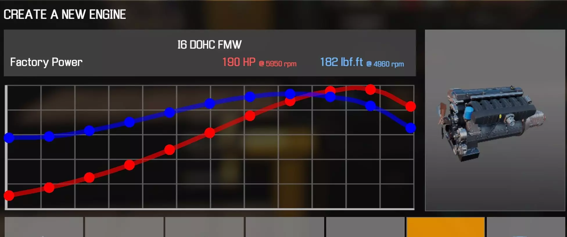【从主商店购买的零件】 【从电子商店购买的零件】 【调校商店提供性能版本】 凸轮齿轮 x2 凸轮轴(直列六缸双顶置凸轮轴 FMW)x2 凸轮轴盖(直列六缸双顶置凸轮轴 FMW)x16 离合器片 离合器压盘 离合器分离轴承 曲轴(直列六缸双顶置凸轮轴 FMW) 曲轴轴承盖 x5 曲轴皮带轮(V8) 发动机缸体(直列六缸双顶置凸轮轴 FMW) 发动机缸盖(直列六缸双顶置凸轮轴 FMW) 发动机缸盖罩(直列六缸双顶置凸轮轴 FMW) 排气歧管A(直列六缸双顶置凸轮轴 FMW) 排气歧管B(直列六缸双顶置凸轮轴 FMW) 飞轮 燃油滤清器 燃油导轨(直列六缸双顶置凸轮轴 FMW) 惰轮A x2 进气歧管(直列六缸双顶置凸轮轴 FMW) 机油滤清器(直列四缸) 油底壳(直列六缸双顶置凸轮轴 FMW) 活塞环 x6 带连杆活塞 x6 动力转向泵(直列四缸) 散热器风扇 B 连杆盖 x6 蛇形皮带 A(直列六缸双顶置凸轮轴 FMW) 节气门(直列六缸双顶置凸轮轴 FMW) 正时链条 A(直列六缸双顶置凸轮轴 FMW) 正时链条 B(直列六缸双顶置凸轮轴 FMW) 正时链条导板 A(直列六缸双顶置凸轮轴 FMW)x2 正时盖(直列六缸双顶置凸轮轴 FMW) 水泵(直列六缸双顶置凸轮轴 FMW) 水泵皮带轮 【发电机】(直列六缸 B) 【点火线圈】x6 【火花塞】x6 直列六缸顶置气门