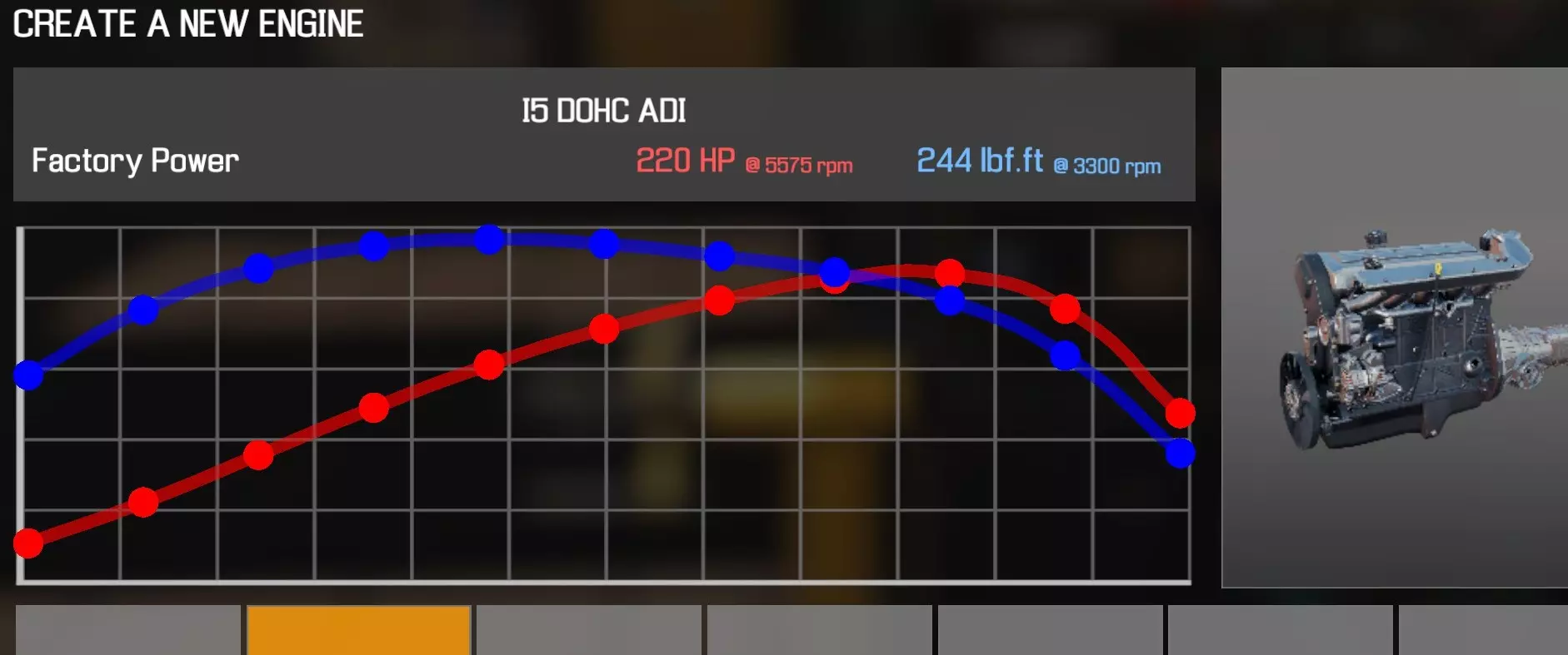 【从主商店购买的零件】 【从电子商店购买的零件】 【调校商店提供性能版本】 皮带张紧器 凸轮齿轮 凸轮轴(直列四缸单顶置凸轮轴 D型) 凸轮轴盖(直列四缸单顶置凸轮轴 D型)×5 离合器片 离合器压盘 离合器分离轴承 曲轴(直列四缸单顶置凸轮轴 D型) 曲轴轴承盖×3 曲轴皮带轮(直列四缸) 发动机缸体(直列四缸单顶置凸轮轴 D型) 发动机缸盖(直列四缸单顶置凸轮轴 D型) 发动机缸盖罩(直列四缸单顶置凸轮轴 D型) 排气歧管(直列四缸单顶置凸轮轴 D型) 飞轮 燃油滤清器 惰轮A×2 惰轮B×2 进气歧管(直列四缸单顶置凸轮轴 D型) 机油滤清器(直列四缸) 油底壳(直列四缸单顶置凸轮轴 D型) 活塞环×4 带连杆活塞×4 动力转向泵(直列四缸) 摇臂(直列四缸单顶置凸轮轴 D型) 连杆盖×4蛇形皮带A(直列4缸单顶置凸轮轴D型) 蛇形皮带B(直列4缸单顶置凸轮轴D型) 节气门(直列4缸单顶置凸轮轴D型) 正时盖A(直列4缸单顶置凸轮轴D型) 正时盖B(直列4缸单顶置凸轮轴D型) 正时盖C(直列4缸单顶置凸轮轴D型) 涡轮增压器(直列4缸单顶置凸轮轴D型) 水泵(直列4缸单顶置凸轮轴D型) 【交流发电机】 【点火线圈×4】 【预热塞×4】 直列5缸双顶置凸轮轴ADI型