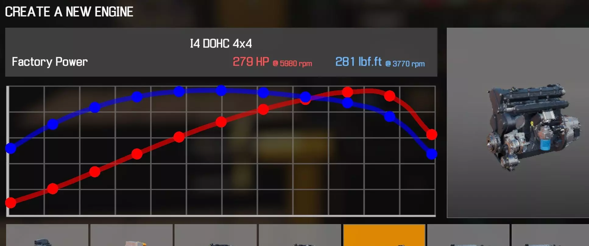 【从主商店购买的零件】 【从电子商店购买的零件】 【调校商店提供性能版本】 皮带张紧器 凸轮齿轮×2 凸轮轴×2 离合器片 离合器压盘 离合器分离轴承 曲轴(直列四缸) 曲轴轴承盖×3 曲轴皮带轮(直列四缸) 发动机缸体(直列四缸) 发动机缸盖(直列四缸) 发动机缸盖罩(直列四缸) 排气歧管(直列四缸涡轮增压) 排气歧管罩 飞轮 前排气管段(涡轮增压) 燃油滤清器 燃油轨(直喷) 惰轮A 进气歧管(直列四缸直喷) 机油滤清器(直列四缸) 油底壳(直列四缸) 活塞环×4 带连杆活塞×4 动力转向泵(直列四缸) 连杆盖×4 蛇形皮带A 蛇形皮带B 节气门(直列四缸) 正时盖(直列四缸) 涡轮增压器 水泵(直列四缸) 【交流发电机】 【点火线圈×4】 【火花塞×4】 直列四缸单顶置凸轮轴 四轮驱动