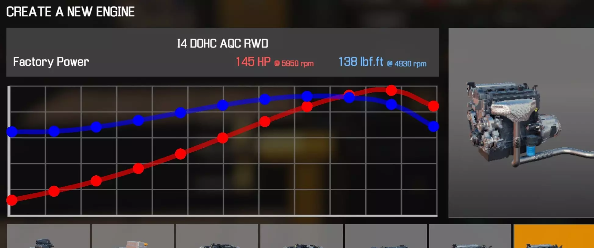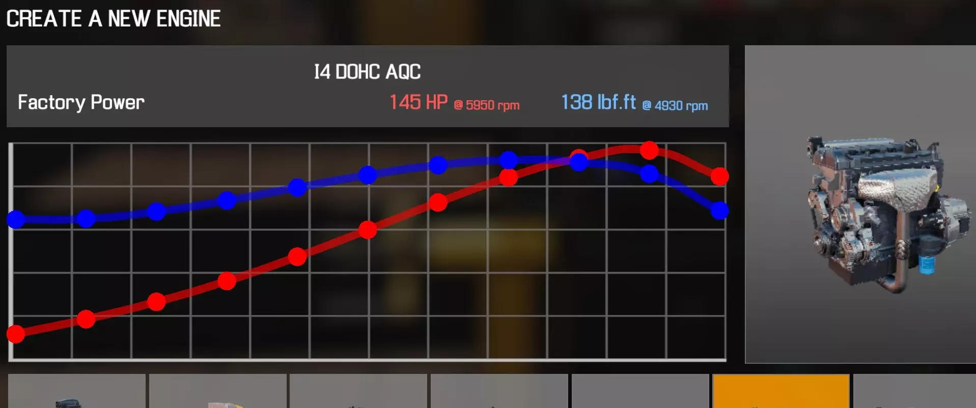 【从主商店购买的零件】 【从电子商店购买的零件】 【调校商店提供性能版本】 皮带张紧器 凸轮齿轮 x2 凸轮轴 x2 离合器片 离合器压盘 离合器分离轴承 曲轴(直列四缸) 曲轴轴承盖 x3 曲轴皮带轮(直列四缸) 发动机缸体(直列四缸) 发动机缸盖(直列四缸) 发动机缸盖罩(直列四缸) 飞轮 燃油滤清器 燃油轨直喷 惰轮A 进气歧管(直列四缸直喷) 机油滤清器(直列四缸) 油底壳(直列四缸) 活塞环 x4 带连杆活塞 x4 动力转向泵(直列四缸) 连杆盖 x4 蛇形皮带A 蛇形皮带B 节气门(直列四缸) 正时皮带 正时罩(直列四缸) 水泵(直列四缸)【交流发电机】【点火线圈】×4【火花塞】×4 I4 DOHC AQC 后轮驱动