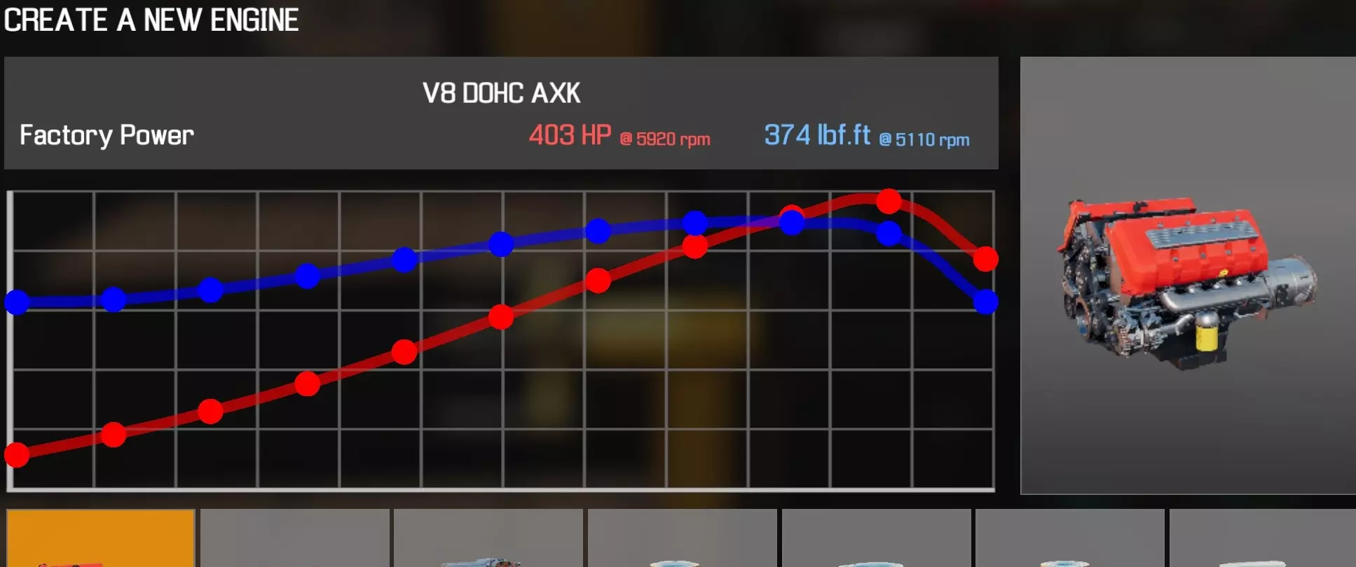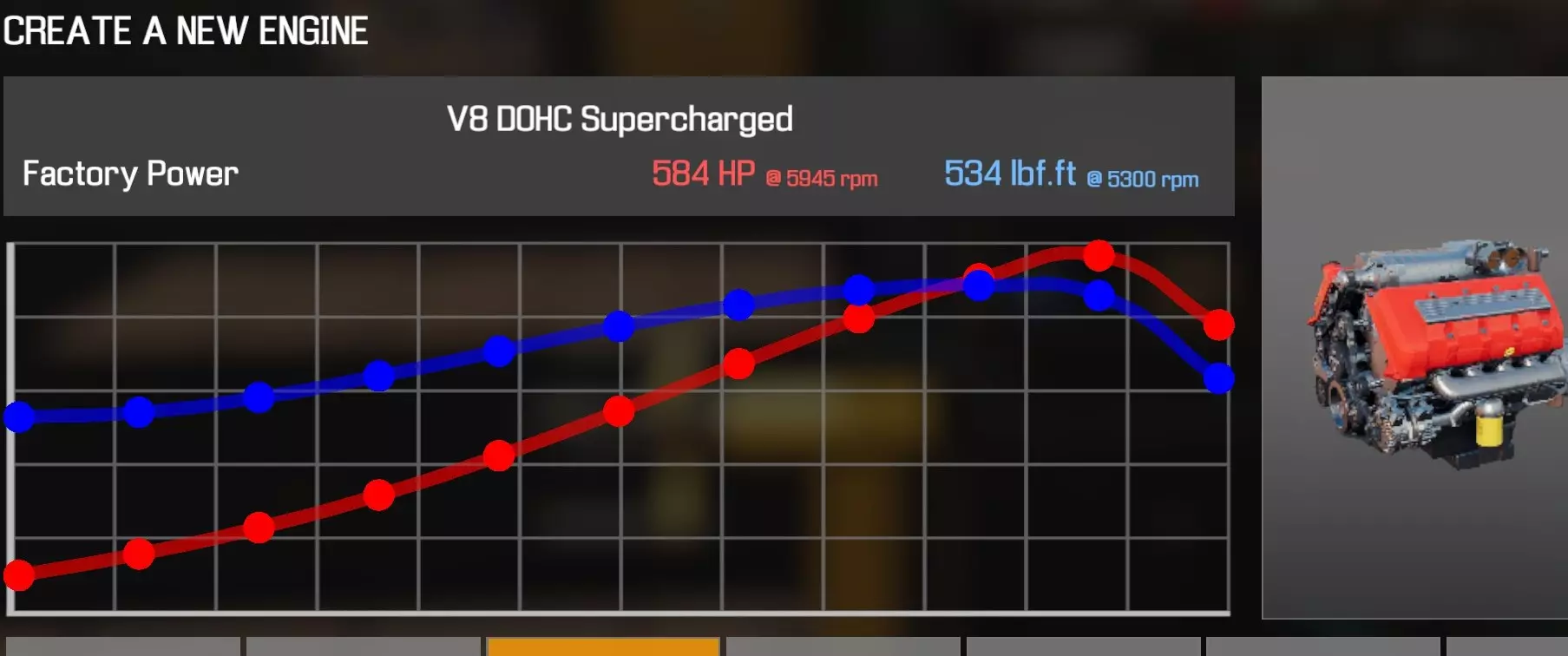 【从主商店购买的零件】 【从电子商店购买的零件】 【调校商店提供性能版本】 臂(V8 DOHC CGM) 凸轮齿轮(V8 OHV) 凸轮轴(V8 DOHC CGM) 离合器片 离合器压盘 离合器分离轴承 曲轴(V8 DOHC CGM) 曲轴轴承盖 x3 曲轴皮带轮(V8) 发动机缸体(V8 DOHC CGM) 发动机缸盖A(V8 DOHC CGM) 发动机缸盖B(V8 DOHC CGM) 发动机缸盖罩A(V8 DOHC CGM) 发动机缸盖罩B(V8 DOHC CGM) 排气歧管A(V8 DOHC CGM)x2 飞轮 燃油滤清器 燃油导轨(V8 DOHC CGM)x2 惰轮A x2 惰轮B 进气歧管(V8 DOHC CGM) 机油滤清器(V8) 油底壳(V8 DOHC CGM) 活塞【V8 OHV C型】活塞环 x8 【V8 OHV C型】活塞连连杆 x8 【I4 B型】动力转向泵 【V8 DOHC CGM型】摇臂 x16 连杆盖 x8 【V8 DOHC CGM型】蛇形皮带A 【V8 DOHC CGM型】蛇形皮带B 【V8 DOHC CGM型】节气门 【V8 DOHC CGM型】正时链条 【V8 DOHC CGM型】正时盖 【V8 DOHC CGM型】气门推杆 x16 【V8 DOHC CGM型】水泵 水泵皮带轮 发电机 【V8 DOHC CGM型】点火线圈 x8 火花塞 x8 V8 DOHC机械增压发动机