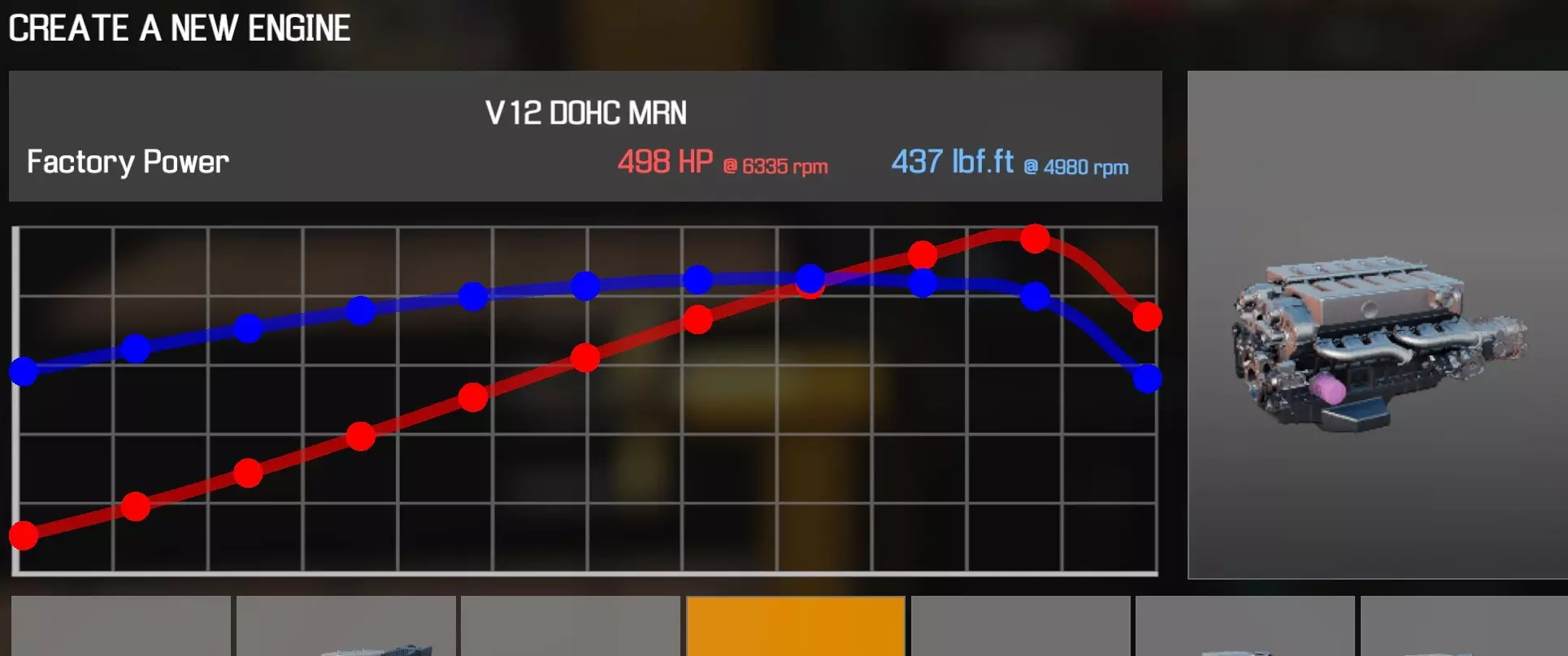【从主商店购买的零件】 【从电子商店购买的零件】 【调校商店提供性能版本】 皮带张紧器 凸轮齿轮 x4 凸轮轴A(V12)x4 凸轮轴盖(V12)x20 离合器片 离合器压盘 离合器分离轴承 曲轴(V12) 曲轴轴承盖 x5 曲轴皮带轮(V8) 发动机缸体(V12) 发动机缸盖A(V12) 发动机缸盖B(V12) 排气歧管A(V12)x2 排气歧管B(V12)x2 飞轮 燃油滤清器 燃油导轨(V12) 缸盖罩A(V12) 缸盖罩B(V12) 惰轮A x2 惰轮B 进气歧管(V12) 机油滤清器(V12) 油底壳(V12) 活塞环 x12 带连杆活塞 x12 动力转向泵(V12)杆盖 x12 蛇形皮带A(V12) 蛇形皮带B(V12) 节温器(V12) 节气门(V12)x2 正时链条盖(V12) 正时链条导板A(V12) 正时链条导板B(V12)x2 正时盖A(V12) 正时盖B(V12) 正时盖C(V12) 水泵(V12) 水泵皮带轮 x2 【发电机】 【点火线圈】x12 【火花塞】x12 V12 DOHC MRN