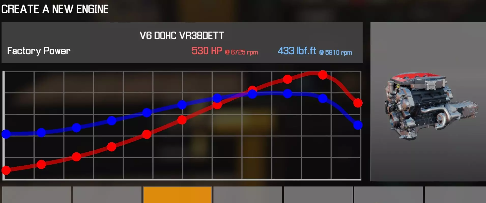 【从主商店购买的零件】⚡️ 【从电子商店购买的零件】 【调校商店提供性能版本】 皮带张紧器 凸轮轴齿轮A(V6 VQ37VHR)x2 凸轮轴齿轮B(V6 VQ37VHR)x2 凸轮轴A(V6 VQ37VHR) 凸轮轴B(V6 VQ37VHR) 凸轮轴盖(V6 VQ37VHR)x8 凸轮轴盖A(V6 VQ37VHR) 凸轮轴盖B(V6 VQ37VHR) 离合器片 离合器压盘 离合器分离轴承 曲轴(V6 VQ37VHR) 曲轴轴承盖x2 曲轴皮带轮(V8) 发动机缸体(V6 VQ37VHR) 发动机盖A(V6 VQ37VHR) 发动机盖B(V6 VQ37VHR) 发动机缸盖A(V6 VQ37VHR) 发动机缸盖B(V6 VQ37VHR) 发动机缸盖罩A(V6 VQ37VHR) 发动机缸盖罩B(V6 VQ37VHR) 排气歧管A(V6VQ37VHR飞轮燃油滤清器燃油轨(V6 VQ37VHR)×2 惰轮A×3 惰轮B×2 进气歧管A(V6 VQ37VHR) 进气歧管B(V6 VQ37VHR) 机油滤清器(V8) 油底壳(V6 VQ37VHR) 活塞环×6 带连杆活塞×6 动力转向泵(I4 B) 摇臂A(V6 VQ37VHR) 摇臂B(V6 VQ37VHR) 连杆盖×6 蛇形皮带A(V6 VQ37VHR) 节气门(V6 VQ37VHR)×2 正时链条A(V6 VQ37VHR) 正时链条B(V6 VQ37VHR) 正时链条导板A(V6 VQ37VHR) 正时链条导板B(V6 VQ37VHR) 正时盖A(V6 VQ37VHR) 正时盖B(V6 VQ37VHR) 正时盖C(V6 VQ37VHR) 正时盖D(V6 VQ37VHR) 水泵(V6 VQ37VHR) 发电机【点火线圈】x6 【火花塞】x6 V6 DOHC VR38DETT