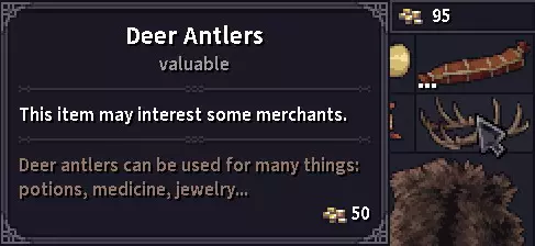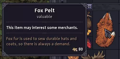 交易 你可以与游戏中几乎所有非玩家角色进行买卖。部分非玩家角色对特定类型的物品更感兴趣,会为此支付更高价格。建议记录价格和非玩家角色列表,以优化你的交易流程。初期最常见的可出售物品包括兽皮、皮革(详见狩猎),以及从土匪身上搜刮的武器和衣物。