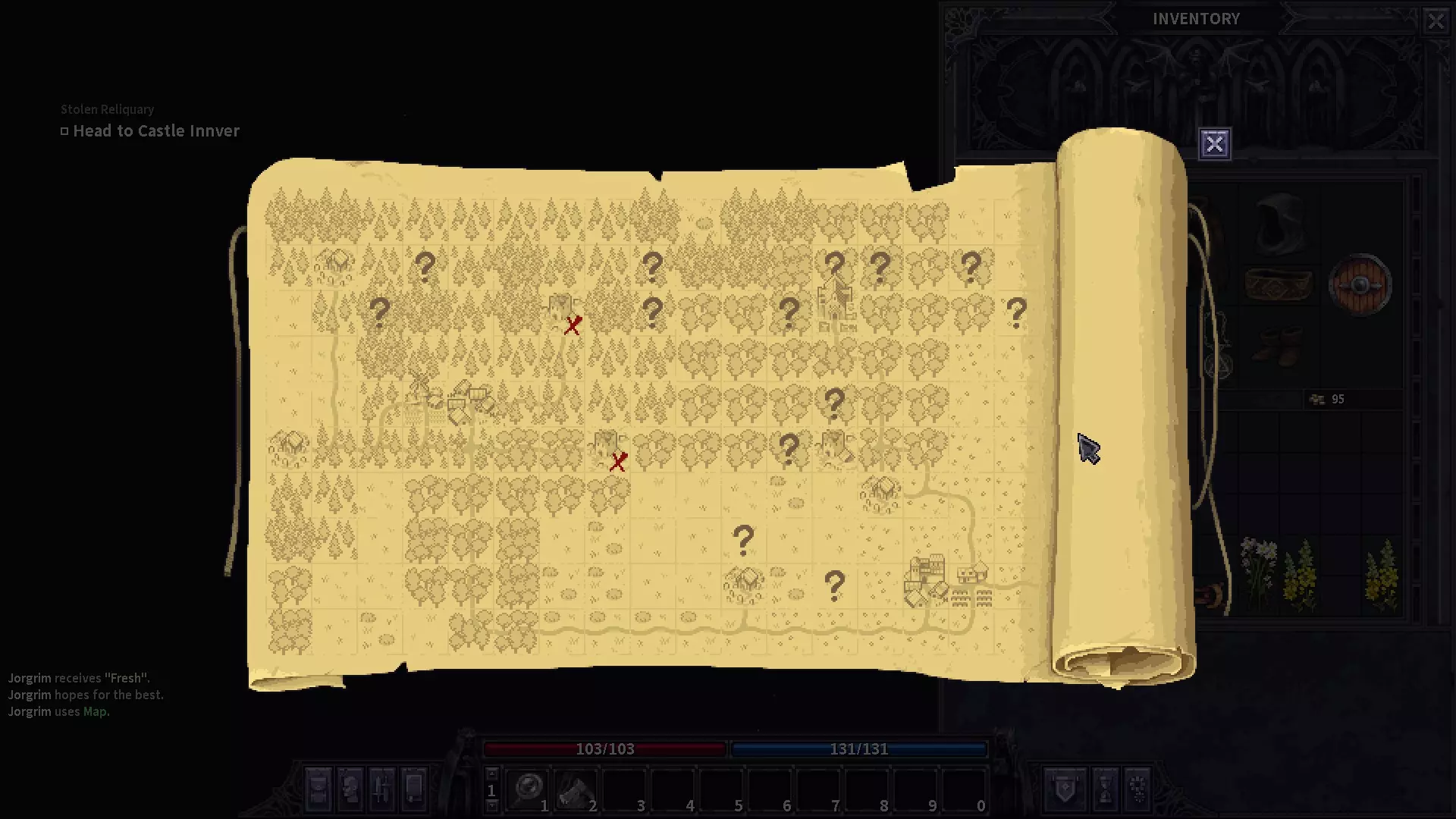 新手提示 你刚打通序章地牢,准备好开始冒险了吧?以下是一些你需要知道的事情: - 只能在旅馆和有可互动床铺的营地保存游戏,因此请相应规划你的探索行程。 - 有时与物体互动有多种方式,别忘了右键点击查看选项! - 尽可能补充食物和水,右键点击任何水源即可获得饮用和补充选项。 - 记住可以通过休息来恢复生命值,右键点击自己并选择休息!时刻留意你的生命值条,如果你无法将生命值回满,且生命值条在达到最大等级前就显示已封顶,那说明你有一个或多个身体部位需要使用药膏、水蛭或其他治疗物品进行处理。 查看你的地图!你的物品栏里应该有一张地图,我第一次玩的时候就没注意到它,结果花了很多时间在外面闲逛,还被熊和狼偷袭,说起来都有点不好意思。地图不会显示你的位置,如果你迷路了,可以通过道路和其他独特的地点来判断自己的位置。如果因为任何原因你掉落或卖掉了地图,可以从长老那里再买一张。现在你可以按M键打开地图。 在大地图上移动时,尽量斜向行走。地图被分成了多个方格,斜向行走可以让你移动速度提升1倍。沿着屏幕角落移动比直线移动快41倍(这是数学计算得出的结果!)。你只需先向左/右移动一个屏幕,然后立即向上/向下移动到另一个屏幕,就能轻松到达下一个对角屏幕。沿着屏幕边缘移动也更安全。 长老在哪里?他在兵营的一楼,兵营是村子里最大的建筑,一楼有卫兵把守。与他交谈并接下两个任务,你可以在任务菜单中切换当前激活的任务。