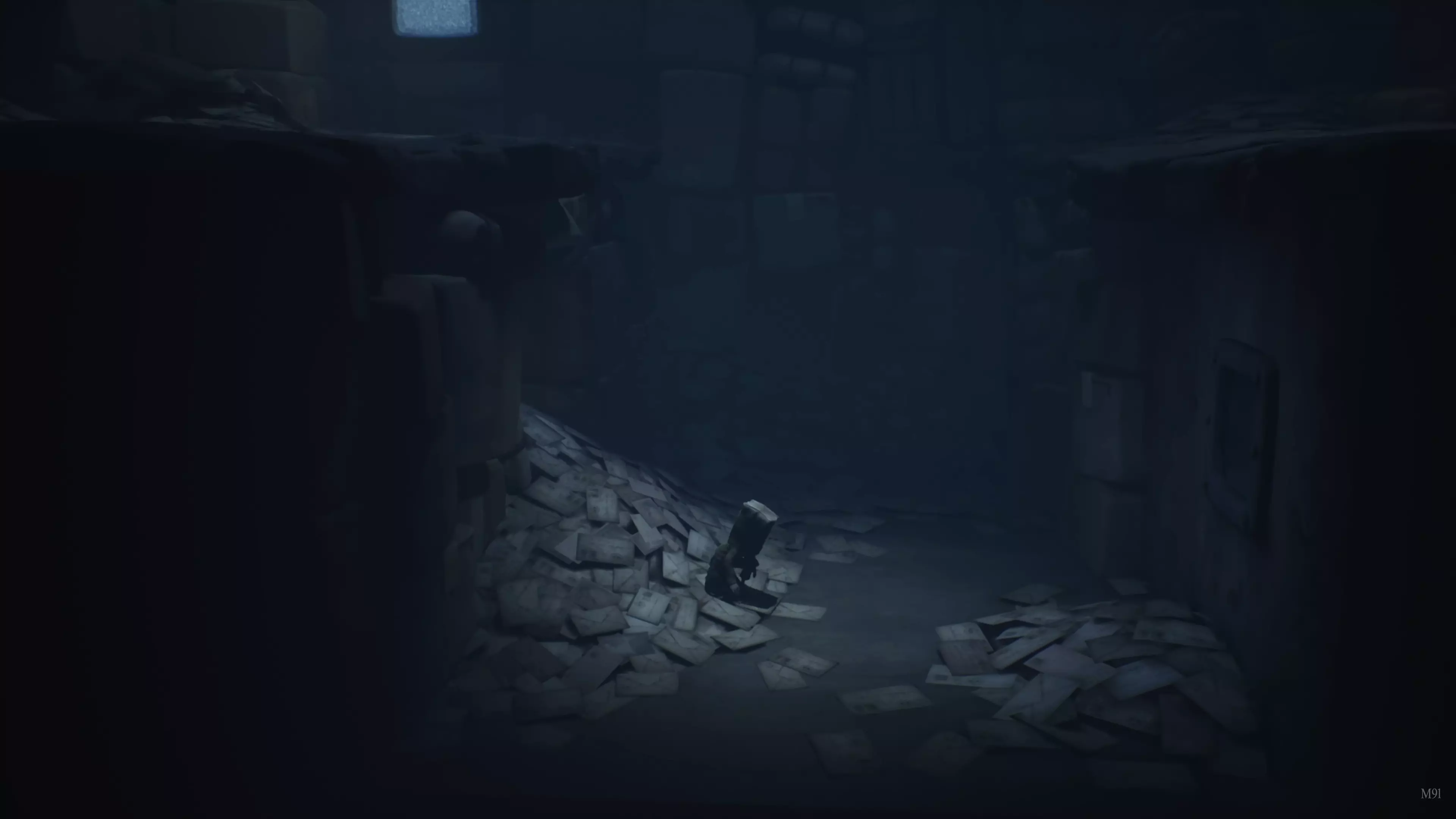 在第四章电视附近的电梯谜题处,由于上层电梯把手无法使用,你需要向下跳。这里有一个手提箱,打开后能找到一个包裹。进入下一个房间,会看到一扇门上有眼睛图案,有人正透过门窥视。将包裹拿到这扇门前,会有一只手伸出来拿走包裹,你就能解锁成就。游戏对此也有提示,因为包裹上同样画着一只眼睛。