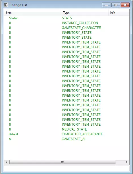 Bounties For this one you'll need to open the GAMESTATE_CHARACTER entry, inside you'll find a number of values related to bounties. "amount#, bountyexp#, bountyfac#, claim#, and crimes#. First you need to identify which number corresponds to which number. For this you need to check the bountyfac value, this will show the faction's unique SID. I will list the most common bounty factions below, otherwise you'll need to open up a mod in the FCS, then go to the faction list and search the SID using the search bar. United Cities - defaultEmpireFactionSID Holy Nation - 1083-gamedata.base Shek Kingdom - 11624-Dialogue (10).mod To remove a specific bounty, the safest method is to change the size of the bounty using the amount# value. Setting it to a low number (but higher than 0), will allow the bounty to expire naturally and quickly. Or you could set it to whatever else you want if you're not after removal. Character Coordinates (Teleporting) First thing you want to do is locate the coordinates you want to teleport to. There are two main methods I use for this. 1. Teleport to another character's location. If you have another character, it's rather easy to simply copy their location in the save data. Make sure they're in the same squad to make it easier to access. 2. Place a campfire at the location you want to teleport to, select the campfire, then open the in-game editor with Shift+F12. It should show you the coordinates of the campfire. Once you have either your character positioned, or the coordinates, open the platoon file for the squad, and open the instance collection. Each instance inside corresponds to a character, open them up to identify which, their name will appear towards the bottom of the instance. At the top of the instance, there will be some x y z coordinates, these are what you need to edit to teleport a character. If you used the campfire method, simply put in the coordinates of the campfire here. If you were using the squad mate method, locate their instance and copy their coordinates over. Once you're done, simply save the file and load the save. Character Personality All characters in Kenshi have a personality, sometimes preset, sometimes random, but all have one. They govern how a character responds to dialog, and the lines they say. While this is mostly a factor for NPCs, since their dialog tends to be the ones with real effects in the world, some players may be interested in identifying or changing their own character's dialog. It's a rather simple change. First, open the platoon file for the character, and locate the "GAMESTATE_CHARACTER" type entry. Towards the bottom half of the lis tof values, there will be one named "personality" with a number listed beside it. The number is which personality the character has, and it corresponds to the numbers shown below. 1 - Honorable 2 - Traitorous 5 - Smart 6 - Dumb 9 - Brave 10 - Fearful 14 - Maniacal There are also a few more, though I advise against using them, and they will never spawn naturally in vanilla. They were never fully implemented, though they do function. There are just almost no lines for them. 11 - Warm/Kind 12 - Cold/Cruel 13 - Normal If you wish to change the personality, simply change the number to the one that corresponds to the personality you'd like. Character Race For this one you'll need a bit of in-game preparation. The first thing you'll need to do is get another character, one of the race you want to switch your character to. Feel free to customize them before hand, or you can do it later. Make sure both the character you want to change, as well as the character of the race you want to switch to are in the same squad. And preferably nobody else in the squad. Then go open their platoon file. Find and open the INSTANCE_COLLECTION and open each character's CHARACTER_APPEARANCE entry and temporarily rename it something you can remember, I personally prefer to use the character's name. In the CHARACTER_APPEARANCE entry for the character whose race you want to swap, delete the reference in the race section on the right. Then once that is done, click the little box in the top right of the entry and select "Copy data form Item" from the list of options, then select the other CHARACTER_APPEARANCE you renamed. This will overrite the appearance of your character with the other character's, including their race. Now, you're not quite done yet. You'll need to copy over the character's part hit chances, or you may run into some unusual bugs with them not matching correctly. Open both character's MEDICAL_STATE entries, and perhaps rename them to be sure and remember which is which. Once inside look for the hit0, hit1, hit2, etc. values on both entries. On your main character, you'll want to change any numbers on these values that do not match to the same ones from your stand in. (e.g. If your main has an 80 on hit4, but the stand in has a 40 on it, you'll manually change the 80 to a 40.) Once the hit values match, you're done now. Rename any entries you renamed back to 0, then save the changes. Once back in-game you can simply dismiss the stand in, or keep them, whatever you wish. Hope you enjoy your new race. :) Death and KO Status Another MEDICAL_STATE edit. There are a few different values related to this. coma (whether the character is in a recovery coma, and needs to get above 0 HP to wake up) dead (whether the character is dead or not) KO (the KO timer on the character in seconds, assuming they're not dead or in a coma) unconcious (if the character is awake or not) Most edits to this are fairly simply. If you've got a KO'd character, you can simply set the KO timer to 0 you'll wake up as soon as you load up the save. Keep in mind HP data WILL override these flags though. If you don't fix the HP of your killed character for instance, they'll just die again once you reload. DeathDeath is little more complicated. Dead characters are moved to a separate squad upon death. You can edit that platoon file to revive 