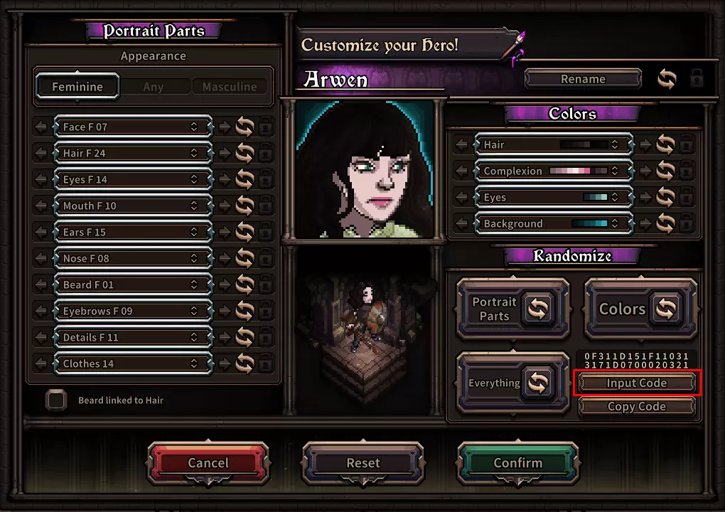 5. 名称未嵌入代码中,因此若要重命名你的英雄,请使用窗口顶部名称旁边的按钮。