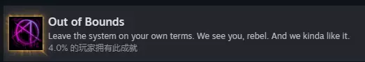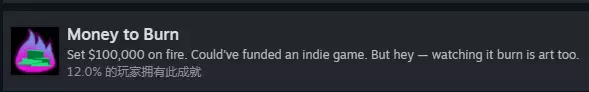 将10万美金放入焚化炉烧掉即可获得。可累积,无需一次性完成,也可以在达成成就后直接读档。Out of Bounds