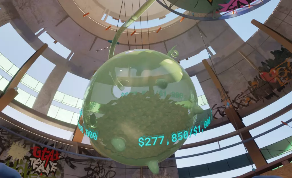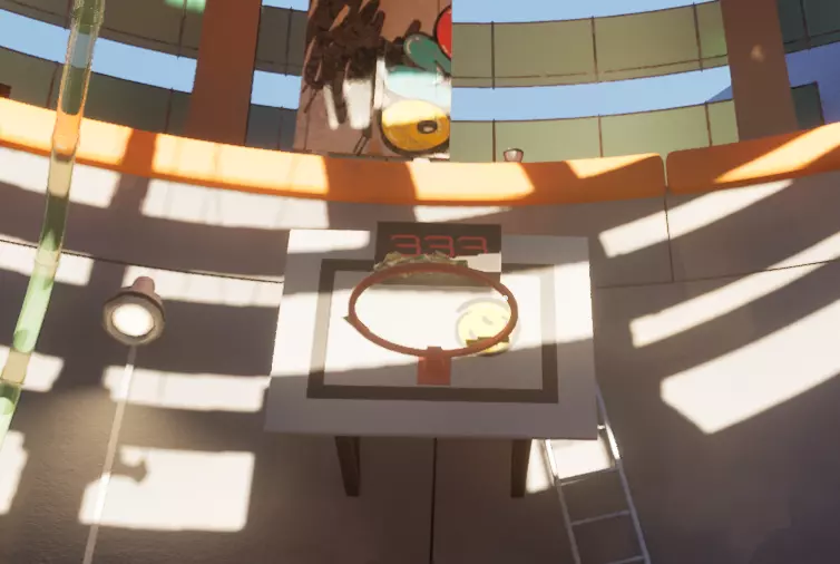 解锁第三个区域后,通过楼梯爬到篮球架旁,使用钱枪将钱打入篮筐,当上方计数器达到200分时即可获得。