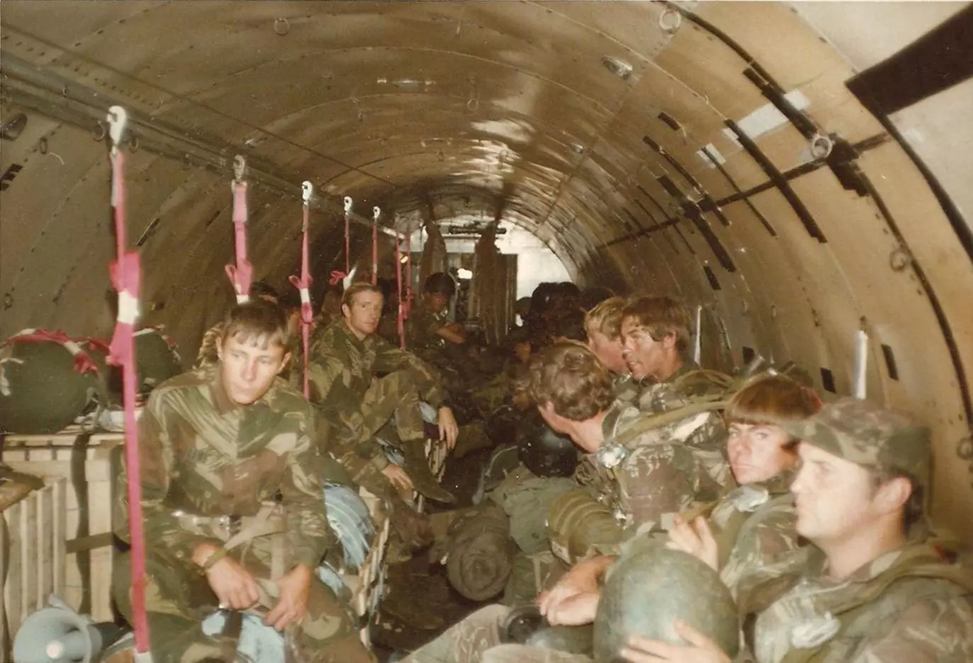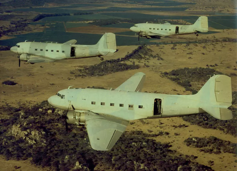 达科他运输机内澳大利亚陆军的实际人员装载情况。注意那些为空投而捆绑好的弹药箱。
