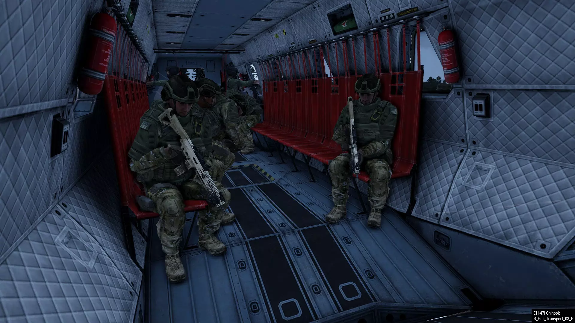 部队运输机正在装载一个由5个“小组”组成的“编队”,这些小组将在一次飞行中投放(如果可能的话) 固定翼部队运输机 乘员:1名飞行员;1名副驾驶;1名装载长;20名伞兵(5个“小组”,每组4人) 装备:除伞兵外,飞机还将携带物资,可通过空投或在着陆区着陆;执行大规模伤员转运任务 任务:在行动指挥官指示了进行“清扫”的暂定着陆区后,飞行员/装载长/编队队长将确定一个着陆区;物资和伞兵将在一次飞行中投放(如果可能的话);根据需要为行动进行再补给