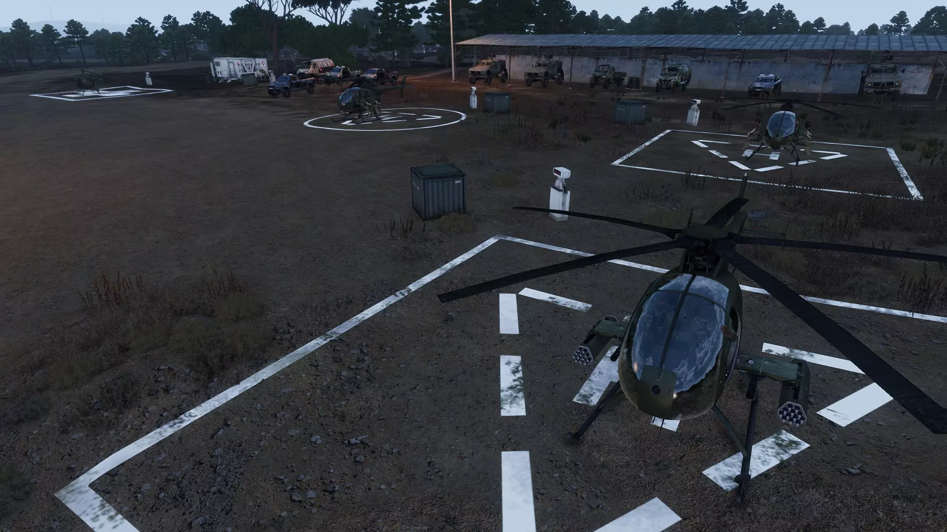 2“G型车”;轻型攻击机;地面车队护送与补给(地面尾队) MH-9蜂鸟:无乘客的K型车 MH-9蜂鸟:G型车(最多6名乘员) 停止 AH-9波尼:配备2挺7.62毫米迷你炮和2个DAR吊舱(各12发)的轻型攻击机 CH-67休伦:空降平台 - 扫荡(最多16名乘员)