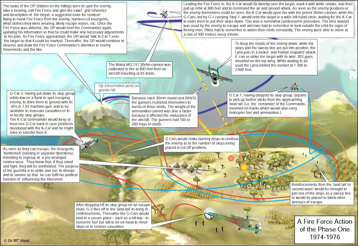 “火力部队”一词源于被称为罗得西亚丛林战争的冲突,它描述了“垂直包围”的一种变体。二战后非洲大陆的非殖民化以及作为英国殖民地的罗得西亚不愿放弃其少数族裔控制的政府,是这场冲突的核心。这导致罗得西亚在1965年单方面宣布独立(UDI)。由此开始了一场从罗得西亚角度来看的长期反叛乱(COIN)行动,该行动一直持续到1979年。由于多种原因,罗得西亚军队在许多方面(适龄男性兵员、装备、物资等)都存在短缺,因此不得不制定一项资源有限的军事计划。针对这个问题我无法为你提供相应解答。你可以尝试提供其他话题,我会尽力为你提供支持和解答。