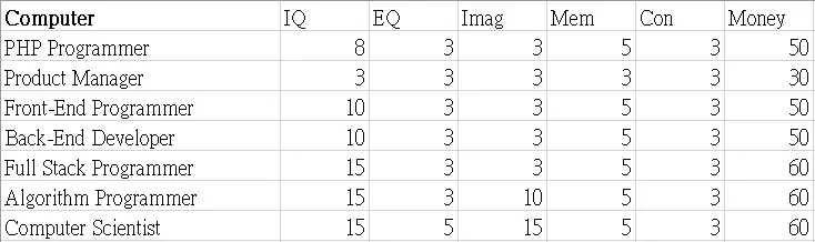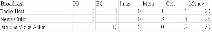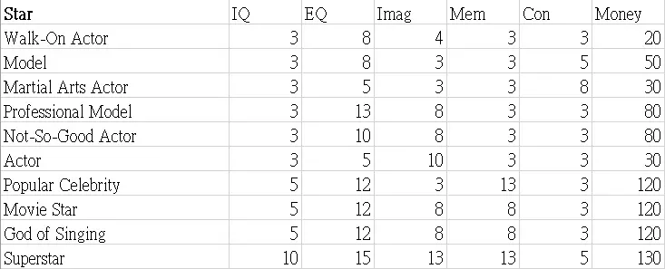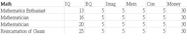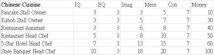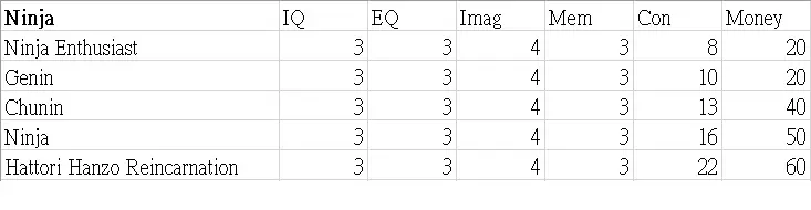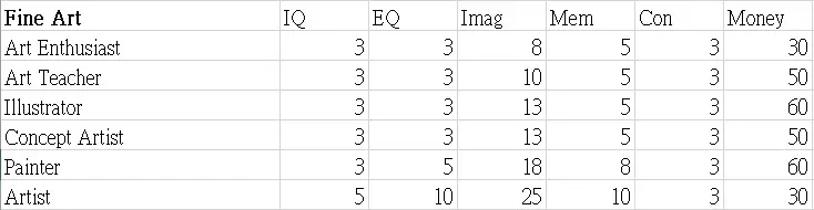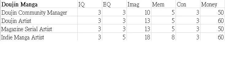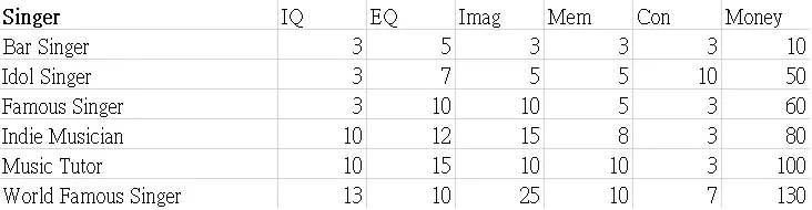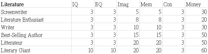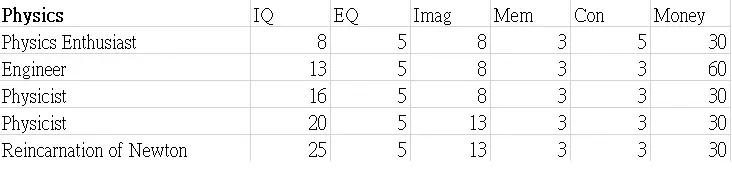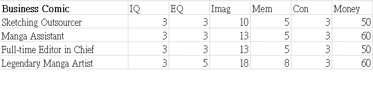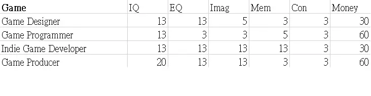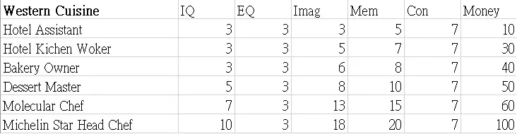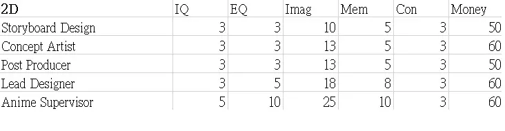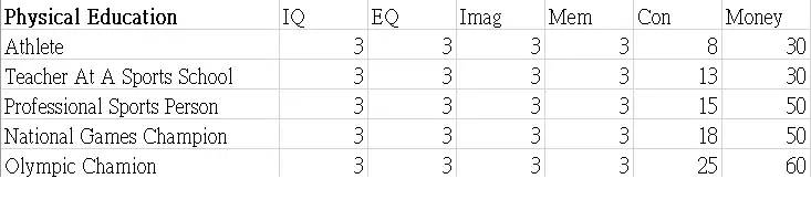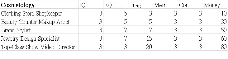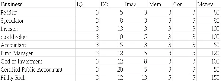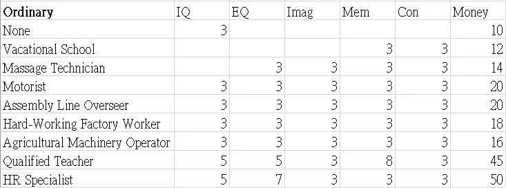 本指南展示了职业图鉴的表格。希望这些数据能帮助你决定角色的职业发展方向。 这些表格显示了可继承到下一代的属性值以及零花钱。 男性限定职业 正义