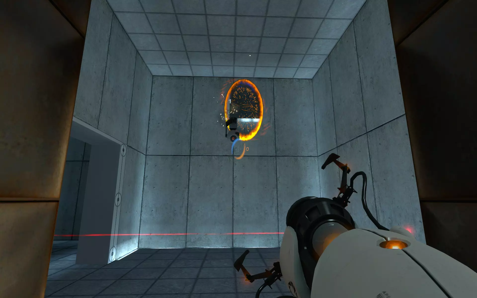 11. 第三台相机在门后的房间里,将你的传送门放在地板上,穿过传送门后,离开前可以将其拆除。