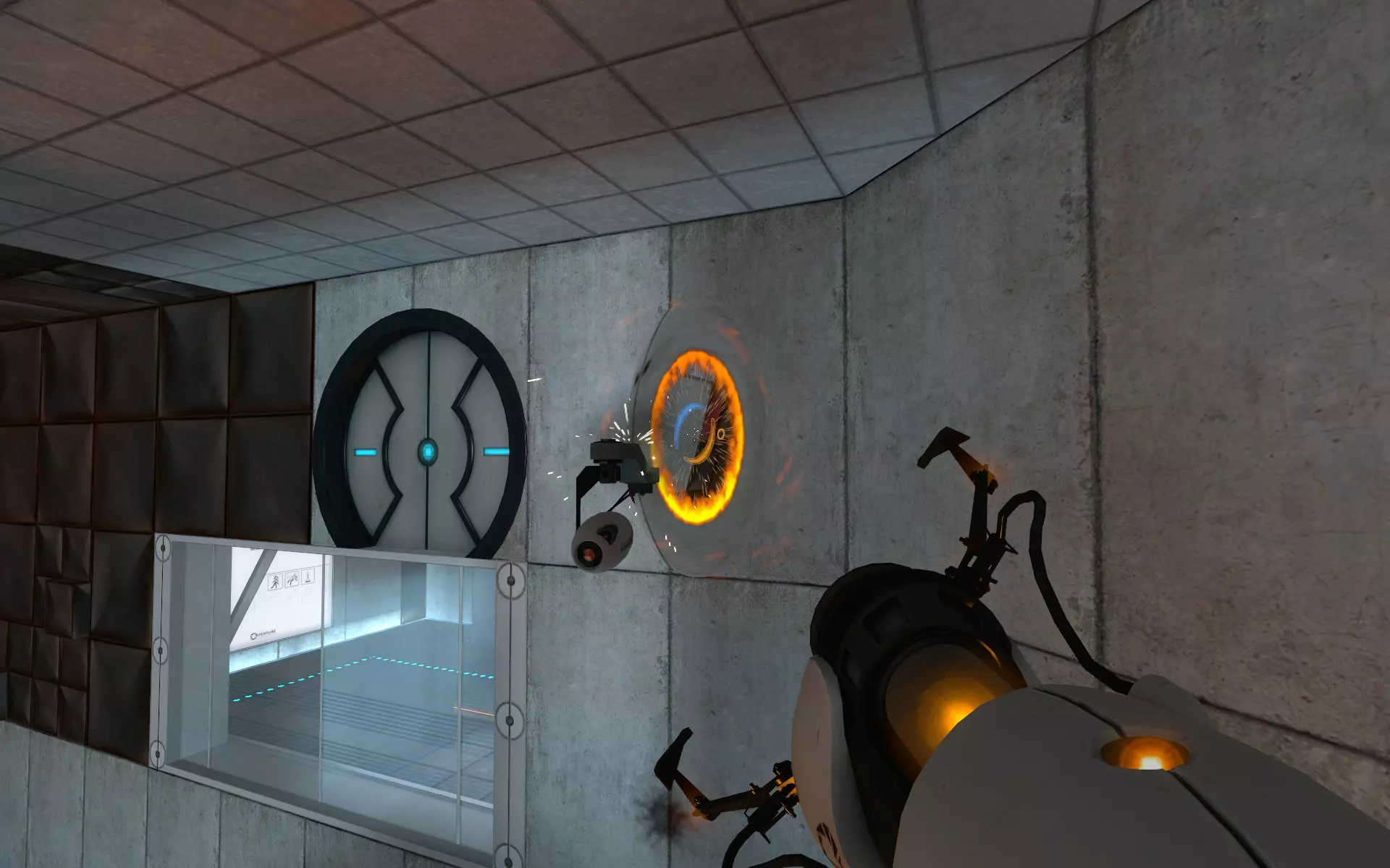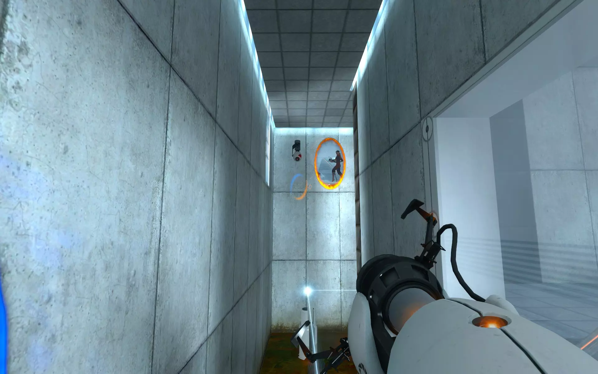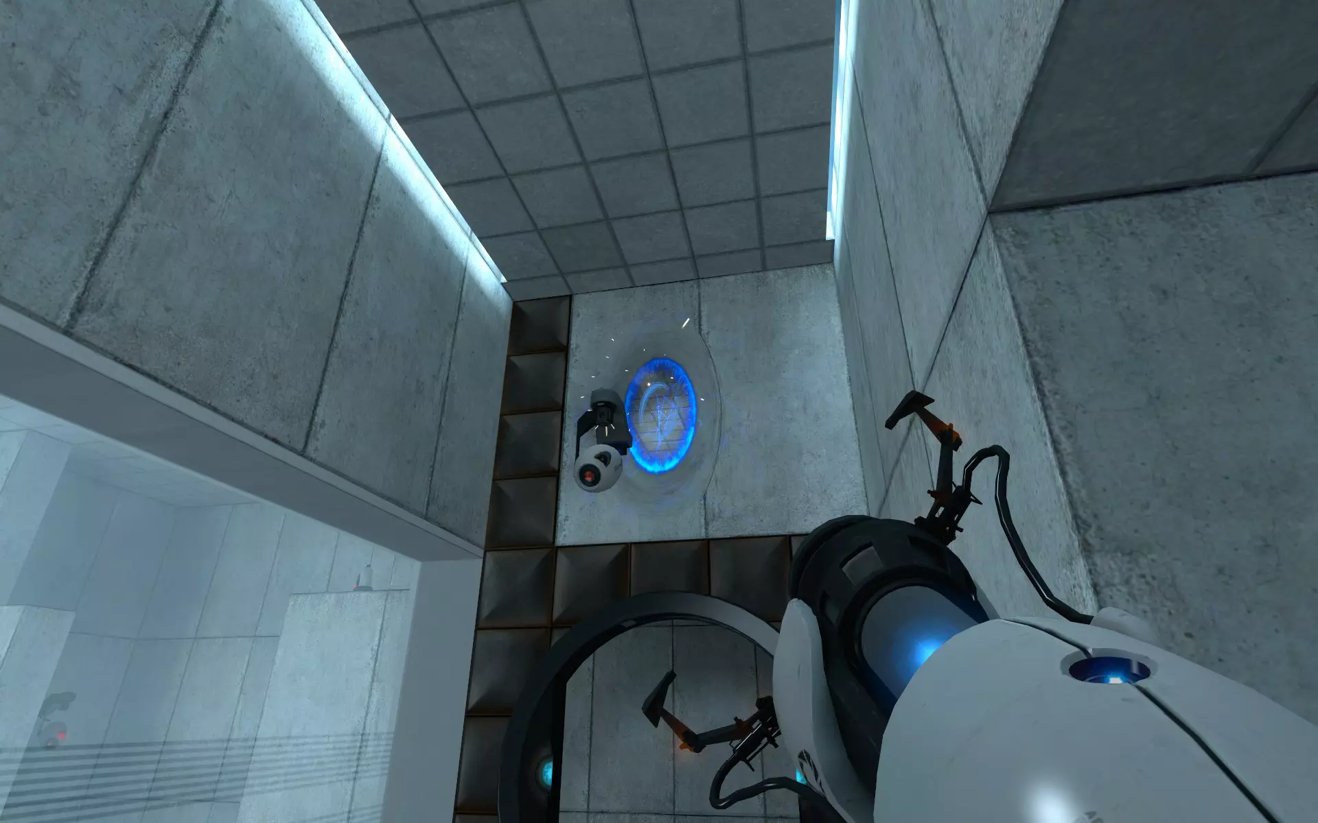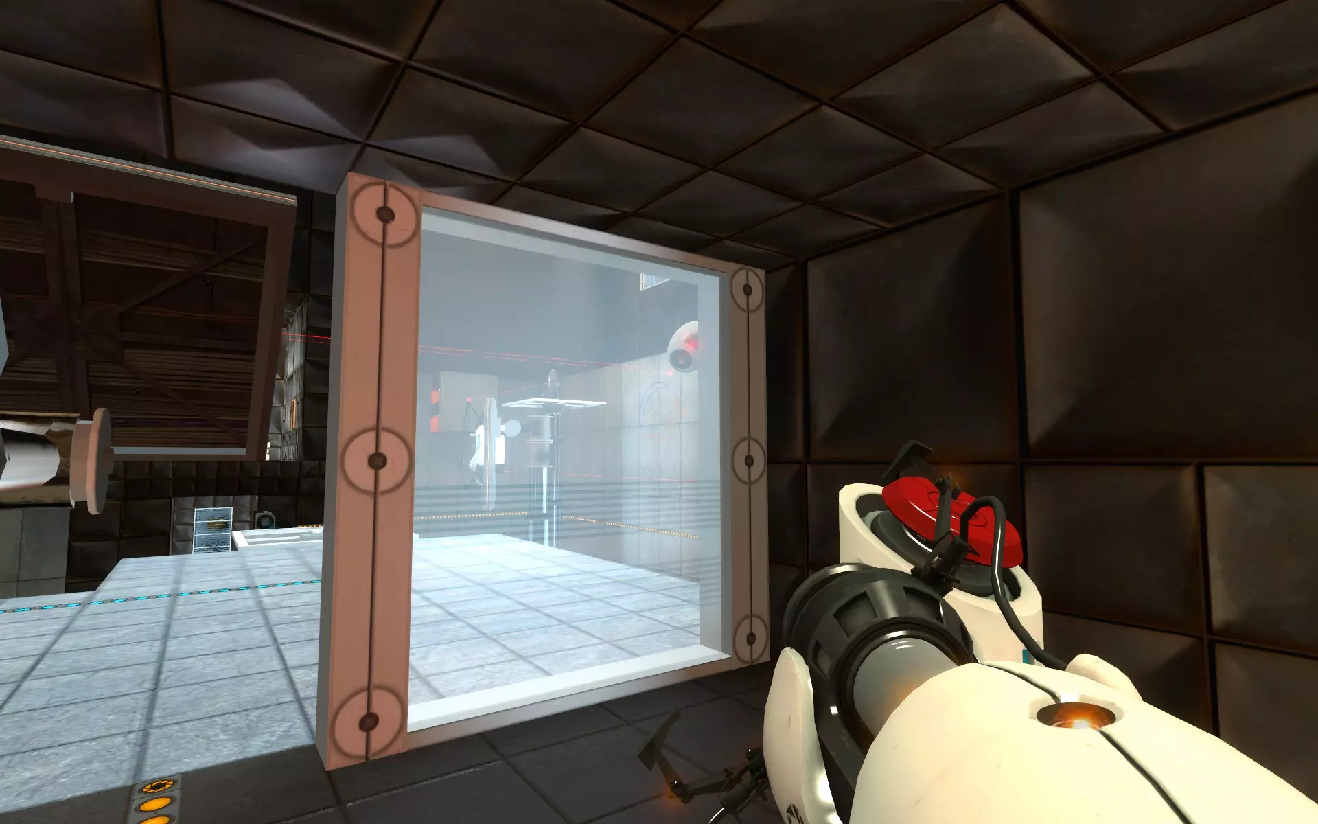 转身,你就能看到第二个【光圈科学手持传送门装置】,它就在GLaDOS提到的缺口的另一端。你可以在这里将其取下,然后继续前进。