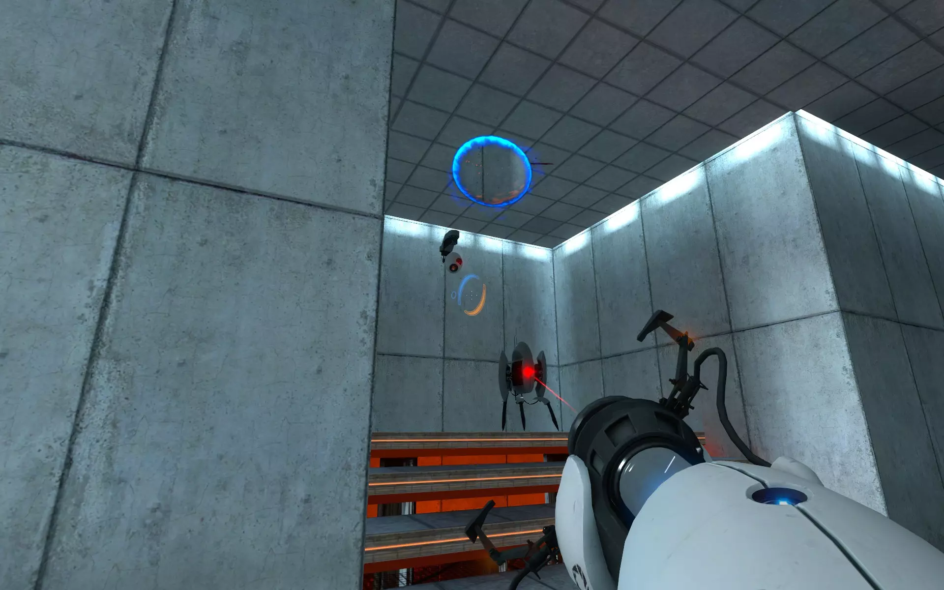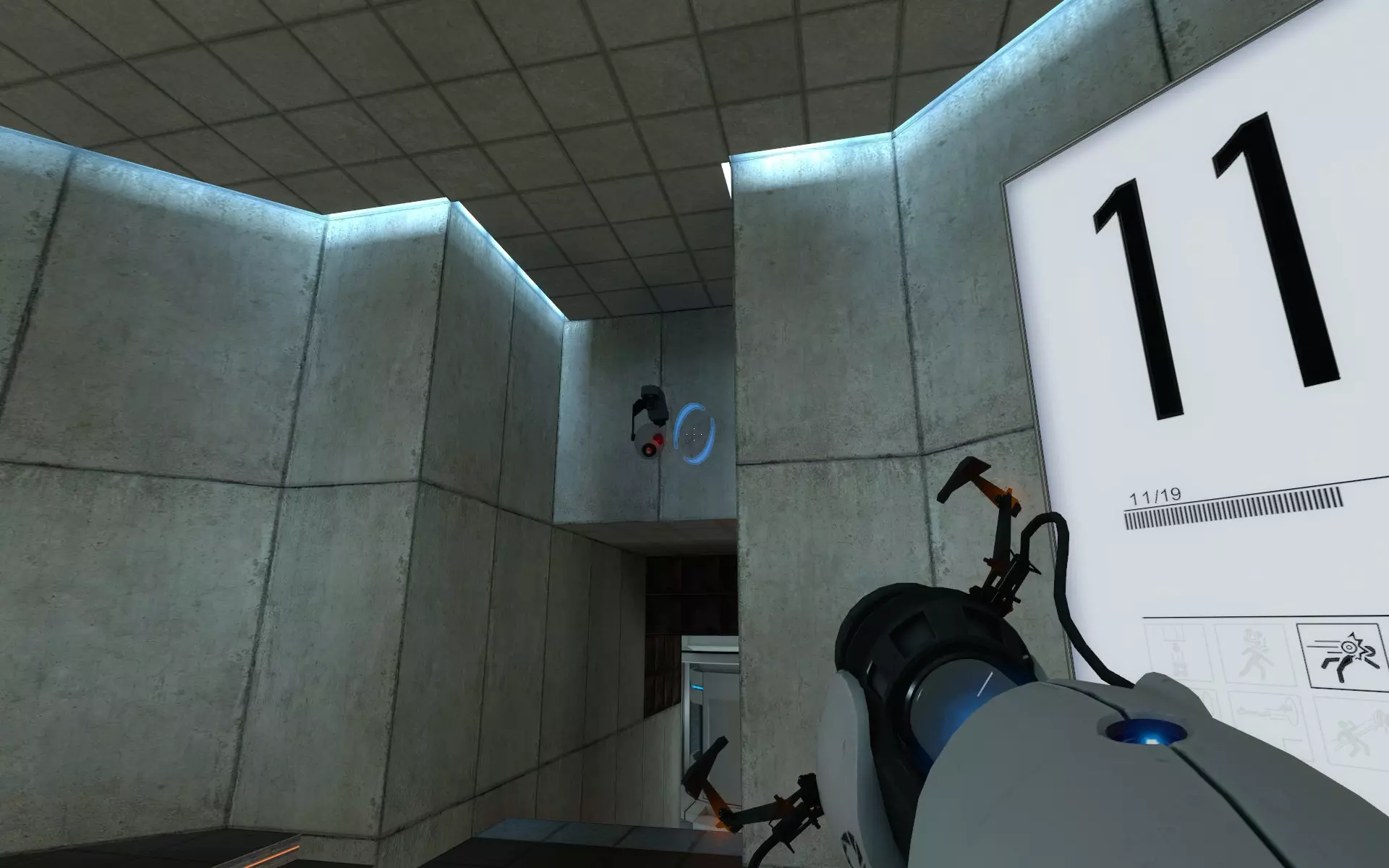 第16关 - 33个摄像头中的26个 22. 第16关是你首次面对我们的小炮塔朋友。我真觉得它们只是想要抱抱。门打开后,第一个摄像头就在你正前方。