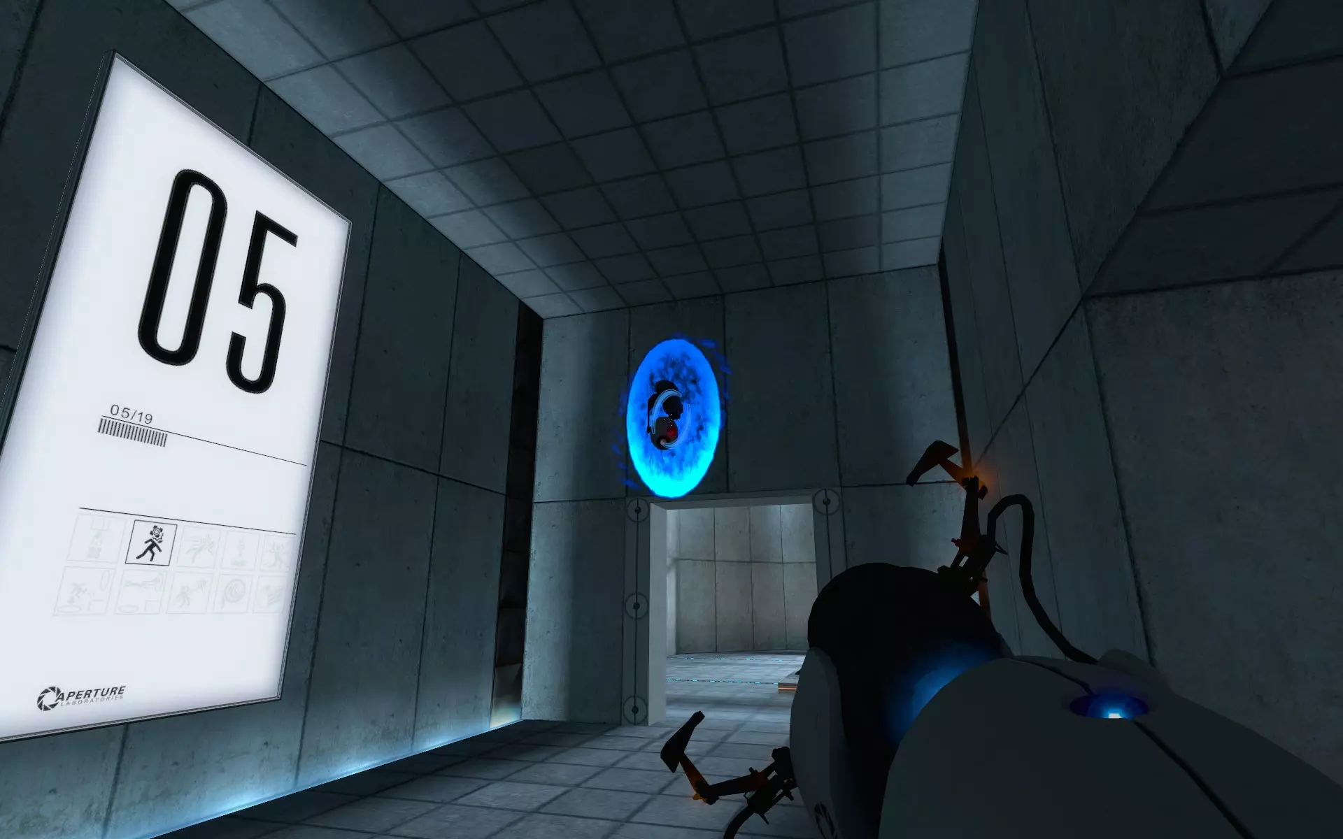 第05号试验室 - 11/33 摄像头 9. 对于第一个摄像头,你实际上可以将传送门放置在它后面的墙上,但在进入该试验室的主房间之前,你的传送门无法与对面的传送门连接。这就像是传送门版的“远离爆炸”。