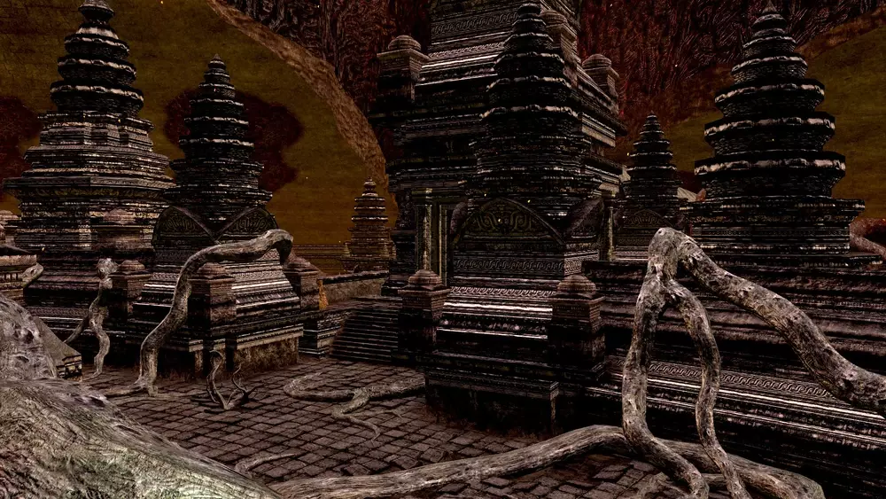 97. Once you land in Anor Londo, look behind you to see the bat-winged demon that can take you back to Sen’s Fortress if need be. Turn back around and descend the stairs to find a Giant Sentinel guarding a doorway. The Giant Sentinels in this first area have uniquely low aggro ranges. This allows you to squeeze by without causing the Sentinels to attack you. On your left you’ll find stairs leading down to the Anor Londo bonfire. 98. After resting at the bonfire, talk to the Darkmoon Knightess. Back up the stairs and to the left you’ll find more Sentinels that should be baited out one at a time and killed to loot the chests they guard. Be warned that the chest on the right is a mimic. Ignore the Sentinel guarding a path past the mimic, as it’s blocked off for now. 99. Head down the lift near the bonfire and kill the Gargoyle, you can get a second gargoyle tail axe by cutting its tail. Turn around and jump down the left side of the lift tower to loot a chest. On the other side of the tower through an archway is a flying buttress you can climb up, letting you enter the chapel through a broken window. Fend off the Painting Guardians and climb a ladder up to the rafters. Cut the chandelier chain before jumping to safety next to a fog wall. Note that you can jump onto a platform below a statue of Gwynevere and through an opening between two columns to loot a chest. 100. Past the fog wall is a tower with a spiral staircase and a rotary lever. Push the lever twice to lower the tower two times and descend the staircase to light the Darkmoon Tomb bonfire. At the top of the staircase is the floor of the chapel. You can grab the black iron armor in a corner, but don’t enter the painting yet. Go back to the rotary lever and push it the other way to raise the tower once, kill the gargoyle that will attack you, and continue on to the main staircase of Anor Londo. 101. At the top of the stairs, turn right and run past the enemies. Up another flying buttress, kill the greatbow-wielding silver knights, and rest at the Cathedral bonfire through the first door on the left. 102. Talk to Solaire next to the bonfire. The fireplace in one room is an illusory wall. Behind it are a mimic and four chests you can loot. Up the stairs on the second floor are two mimics, and stairs leading to the roof behind a door. There’s a titanite demon behind another door that you can come back for later. At the top of the stairs, ignore the silver knight with a greatbow, head straight, down a spiral staircase, and talk to Siegmeyer of Catarina. Kill the three silver knights blocking his path and return to him to get the tiny being’s ring. 103. Past the greatbow-wielding silver knight on the roof is the way forward. When you come to the main hall, make a left turn up the stairs, past the broken window, and through a narrow passage that takes you to the Giant Blacksmith. You can squeeze behind the Giant Blacksmith to loot a chest. Talk to the Giant Blacksmith to ascend your zweihander +10 into a lightning zweihander and upgrade it to +5 with 8 titanite chunks, one titanite slab, and 4800 souls total. Buy the giant’s armor set from the giant for 26,000 souls, then upgrade each piece of the Giant’s armor set to +2 with 8 twinkling titanite and 1600 souls total. The armor is too heavy to wear for now. Equip the lightning zweihander +5 in two hands, you don’t have enough strength to one-hand it yet, and equip the mask of the sealer and crimson waistcloth to compensate for the sword’s weight. Congratulations, you have a max-level weapon halfway through the game. 104. Past the Giant Blacksmith you can open a door leading back to the main staircase of Anor Londo. Head back to the main hall, past the giant sentinels, and use the rotary lever there to open the giant front doors of the main hall. 105. In the main hall, use your black eye orb to invade Lautrec of Carim’s world and kill him. Equip the ring of favor and protection in place of your ring of steel protection. If you remove the ring of favor and protection now it will permanently break, so don’t take it off. Re-equip your old armor combo of the chain chest armor and elite knight helm, gauntlets, and leggings. Don’t go up the stairs to the boss room just yet. Painted World of Ariamis