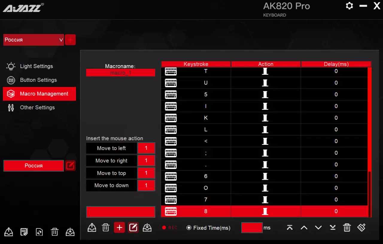 本指南将帮助你在最短时间内达成100万次邦戈节拍(点击+按键)的记录。 但请注意! 部分方法可能并不适用于所有人! 建议在开始尝试前先完整阅读本指南内容。 1. 常规方法。 这是最常规简单但速度较慢的方法。 打开邦戈猫。打开记事本(非必需,用于统计按键次数,避免误触其他内容)。在里面随便输入内容,疯狂敲击键盘和鼠标之类的。这不是最好的方法,对吧?=) 2. 更有趣的方法。 这个方法已经更有趣了,但仍然不够快。 打开Bongo Cat。 打开记事本(非必需,用于统计按键次数,避免误触其他内容)。打开喜欢的音乐,跟着音乐的节奏敲击键盘。看着我们的小猫咪用爪子像打鼓一样玩耍。 3. 最快的方法。 这个方法可能并不适合所有人,但对于很多拥有优质键盘的玩家来说会非常有帮助。 打开Bongo Cat。 打开记事本(非必需,用于统计按键次数,避免误触其他内容)。打开我们的键盘软件(可在您键盘的官方网站上下载安装,以我的键盘为例是黑爵AK820 Pro)。进入宏设置界面,创建一个新的宏(名称可任意填写)。然后手动或通过录制操作,按下所有字母键。我们将它们设置为所有按键同时按下和释放(需要尽可能使用更多按键),且每个按键的按下和释放之间的延迟最小。 我个人的做法是开始录制后,用手掌按压键盘,尽量同时按下更多按键。然后调整延迟并保存宏。我成功使用了21个按键。 5.1