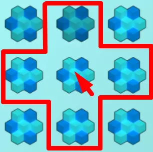 (忽略无法达成的宝石概率,此操作基于一个特殊的测试存档) 点击机制:当你点击一个方块时,该方块及其上下左右的方块都会重新刷新。除蓝宝石外,其他符号完全随机出现。蓝宝石有特定的获取概率,初始为1%,每提升一级宝石概率就增加1%。这意味着完成这个小游戏的最佳方法是从地图的一侧逐步清理到另一侧,这样最后没有宝石的区域就会集中在地图的角落,此时你只需在一次刷新中对齐3个宝石,而不是5个。