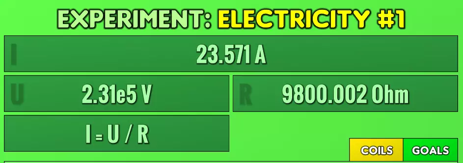 在本实验中,你的目标是提高屏幕顶部的数值。为此,你可以使用最多5个线圈,每个线圈最多分为20根导线,每根导线最多可升级6次。其工作原理是:增加线圈和导线数量会提升电压(V),而升级导线则会降低电阻(欧姆)。正如游戏所示,顶部的数值是通过左侧数值除以右侧数值得出的。 prestige:当所有100根导线都已购买并升级为超导体后,你可以进行 prestige。prestige会将你的线圈重置为初始状态,即单个5导线线圈。 电压升级:以乘法方式提升30%的电压,这意味着电流也会提升30%。 电阻升级:以乘法方式降低20%的总电阻,这意味着电流会提升1/0.8,即25%。黑暗实验 黑暗实验是最难理解和解释的,但我会尽力涵盖要点。