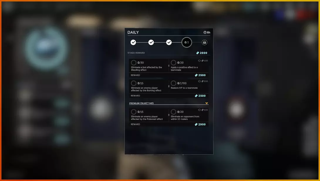 如上图所示为每日任务的第4阶段。每个阶段都需要完成若干所列目标才能进入下一阶段,且无法跳过阶段。你必须完成当前阶段的所列每日任务后,才能继续进行下一阶段的每日任务。 每日任务完成后会获得不同数量的【 Credits(游戏内货币)】,而完成整个阶段还能获得额外奖励。各阶段及其奖励如下: 阶段1:每个免费目标奖励2000【 Credits(游戏内货币)】,每个 premium 目标奖励2200【 Credits(游戏内货币)】,阶段完成奖励1800【 Credits(游戏内货币)】。 阶段2:每个免费目标奖励2000【 Credits(游戏内货币)】,每个 premium 目标奖励2200【 Credits(游戏内货币)】,阶段完成奖励1800【 Credits(游戏内货币)】。 阶段3:每个免费目标奖励2250【 Credits(游戏内货币)】,每个 premium 目标奖励2500【 Credits(游戏内货币)】,阶段完成奖励2700【 Credits(游戏内货币)】。第4阶段:每个免费任务奖励2500游戏币,每个高级任务奖励2900游戏币,完成阶段奖励2000游戏币。 第5阶段:每个免费任务奖励5000游戏币,每个高级任务奖励5800游戏币,完成阶段奖励2500游戏币。 对于每日任务,完成至第3阶段,免费玩家可获得27300游戏币,高级玩家可获得41100游戏币。完成至第5阶段,免费玩家可获得41800游戏币,高级玩家可获得64300游戏币。 假设你无法完成某个每日任务,难道就要放弃吗?并非如此。请查看下方图片。