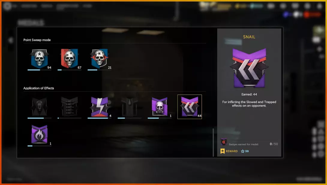 如你在我个人资料的勋章部分所见,每当我对敌人施加减速或陷阱效果时,我都会获得一条绶带。每条绶带都能提供战斗经验值,并为勋章积累进度。勋章会提供额外经验值,而所有这些都有助于完成指挥部页面上那个无限循环的【2000经验值兑换500 credits】目标。例如,蜗牛勋章每个需要50条绶带,而大多数其他勋章所需的绶带数量更少。 因此,如果你想加快通过每2000经验值获取那些credits的速度,就需要尽可能多地获取绶带和勋章。这些干员(海盗、波旁、米科拉伊、迪亚波罗)都具备快速击杀敌人以及对敌人施加负面效果的能力。即使在PvP中,这些角色在最大化经验值进而获取 credits(游戏货币)方面表现也很出色。举个例子:下图所示的这场歼灭模式比赛中,说实话我打得并不算好。其他玩家的击杀数、处决数等都比我多。但即便不算获胜获得的40点经验值奖励,我的经验值依然比其他任何人都高。