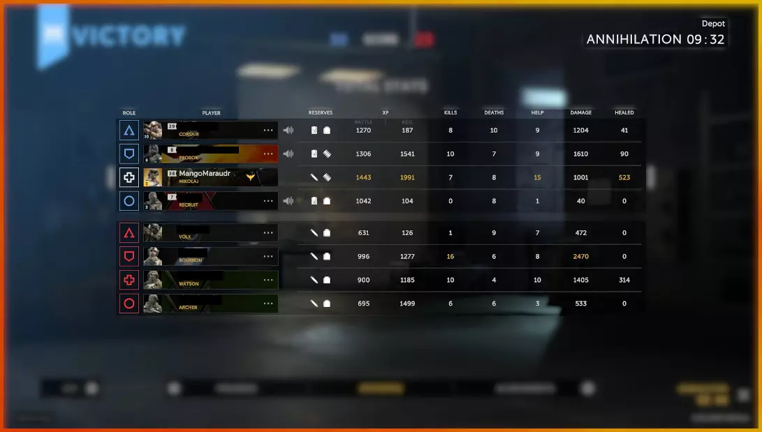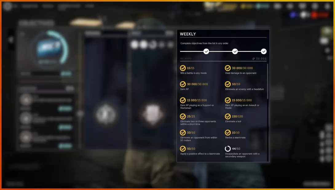 This objective allows you to get 500 Credits everytime you earn a total of 2000 EXP cumulatively. This means that if you earn, as I did in the match shown above, 1224 Battle EXP and 1835 Additional EXP, then the 500 Credits objective will complete one time and I will have an additional 1059 EXP contributed towards getting another 500 credits.This does not subtract from your Operator, and is a completely separate interaction with EXP. Account Level is different however. When leveling up your account, only Battle EXP will contribute towards it. So, that 1835 Additional EXP I got in the match does not factor in for Account Level progress. Different levels of your Account Level give different rewards, and sometimes those rewards are Credits. Account Level, however, takes a very VERY long time to grind, so think of these as small bonuses rather than a consistent source. Maximizing Your Credit Gain So, how do you MAXIMIZE your Credit gains? Well, to start with the most obvious, do your daily and weekly missions. These take a long time to grind out, but are your best source of Credits. Most players will struggle with Stage 4 & 5 of the Daily Missions, almost nobody should struggle with Weekly Missions provided you play enough. Your best option for doing dailies fast is to play Marksmen and Medics in the Point Sweep mode for stages 1-4, and to play any character you can perform well with in Showdown and Frontline modes for Stage 5. Why Medics and Marksmen in Point Sweep? Because they cover the most bases when it comes to daily objectives. Marksmen eliminate with headshots more often, can kill in quick succession, and can kill certain bots (AKA Chemists) in a single shot without being injured. Medics have more revive kits, heal HP and apply positive effects to teammates. Both roles additionally have operators that can apply status effects to bots for some dailies. For Example, an objective can be "Eliminate a bot affected by the Bleeding effect 30 times" Sztylet, the Polish GROM Marksman previously mention in this guide, has an ability that places the bleeding effect on any opponent he hits with his primary weapon for a short time. The Characters you want to look out for are Sztylet, Mikolaj, Miguel, and Diablo. These 4 will allow you to inflict the effects of Burning, Marked, Slow, and Bleeding on opponents to contribute towards these daily objectives. If you NEED to play Assault, pick Corsair. In addition, Point Sweep is the easiest mode to win in, making objectives such as "Win a battle in any mode" trivial. As for Stage 5, why Frontline and/or Showdown? Well, what you'll want to do is reroll the objective until you see either the objective "Incapacitate an enemy player" or "Win a battle in Frontline mode" Why we want to do this is simple, because these objectives can be rushed through with a team or even alone, but I absolutely do not recommend doing this alone. Getting these objectives done in Frontline mode involves having your team rush the enemy hard. If you all die, you can instantly leave and re-queue into Frontline having gotten an incapacitation or two but losing that operator for a short while. If you kill the enemy team, all you have to do is collect the now far less defended Team Intel, Normal Intel and Special Intel to quickly boost your score over the limit and win a very fast Frontline victory. Even if you end up all dying in the attempt to storm the opposing team, your operators wont be locked for long, because the enemy team only needs to pass the minimum score threshold to win. By the time you get out of your next match, win or loss, you should have your previous team composition unlocked again. In Showdown Mode, you can be alone or with a group. Just play normally in getting kills and the 20 player incapacitation daily will get done pretty quick. The other method I recommend for Credit gain is actually tied to the Operators listed for Point Sweep. Ribbons and Medals are our goal here, along with some others. The ones I recommend are: Corsair for Assault, Bourbon for Support, Mikolaj for Medic, and Diablo for Marksman. You see, every time you either place a negative status effect on an enemy or the enemy takes enough damage from a certain effect, you get a Ribbon. Ribbon give Battle EXP, and enough Ribbons gives Medals with give Additional EXP. In addition, if your teammate kills an enemy you placed a Negative effect on, you still get an additional Ribbon on top of the Assistance Ribbon. You will get both the Assistance Ribbon and the Teamwork Ribbon, which is essentially twice the Ribbons for the same amount of effort.