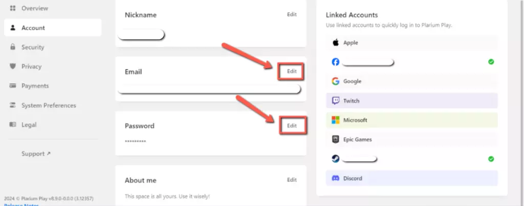 4. 点击Plarium Play中的设置 5. 在打开的窗口中,点击添加邮箱和密码,并输入你的新登录凭据