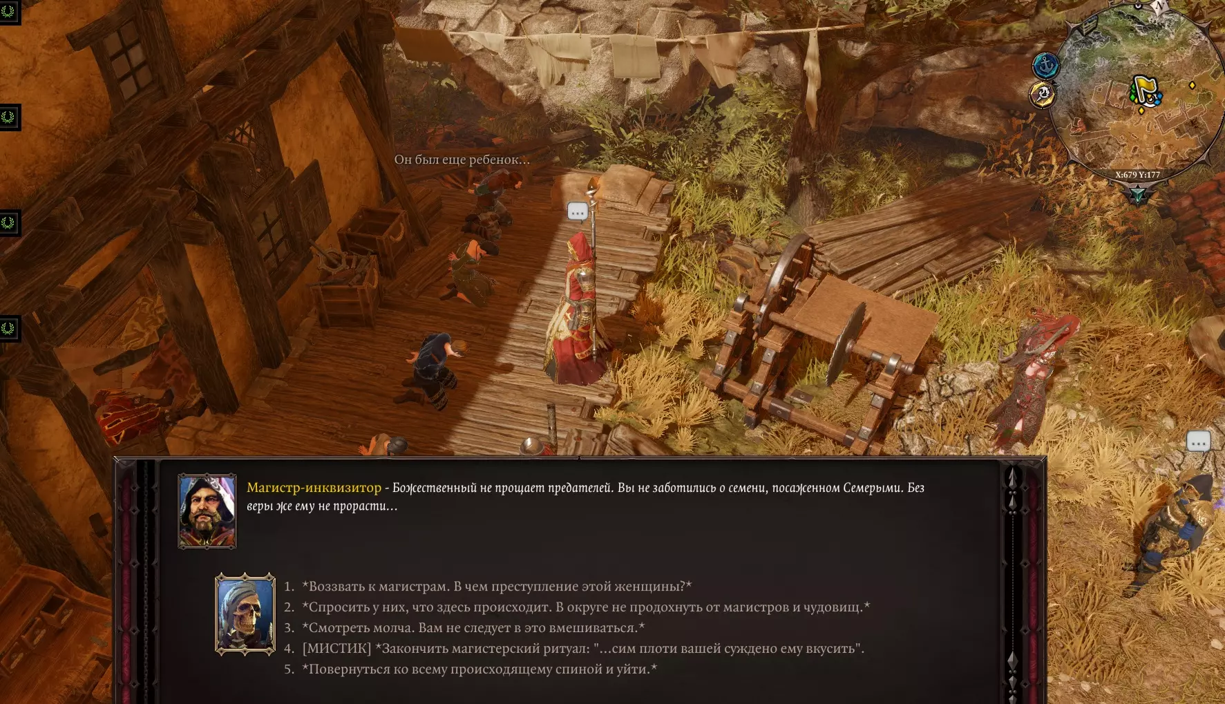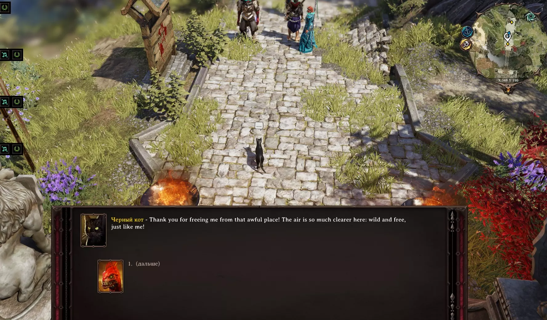 在林间空地上的西屋和车库旁,可以看到一只名叫费尔诺的鸡,它病得很重。 选择拥有“学者”技能的角色——会得知这是凤凰,需要将其焚烧。 使用火焰魔法。 会出现一枚蛋。 它的命运掌握在你手中。 在稍偏南的位置是女巫爱丽丝·艾莉森的家。在房子南侧的灌木丛中藏着房门钥匙,进入房子并进行搜索。 在桌子上拿到【女巫之眼】。女巫本人就在修道院森林里。(而且我觉得和她战斗会非常困难) 黑矿场的黑暗事件 在东桥上有一队圣骑士,他们请求处理东方的事务。 波戈斯特 我们跑向波戈斯特。然后……哦!托尔克文(达利斯船上的奴隶)。他请求找到位于苏雷耶夫墓穴中的 artifact。 家庭事务