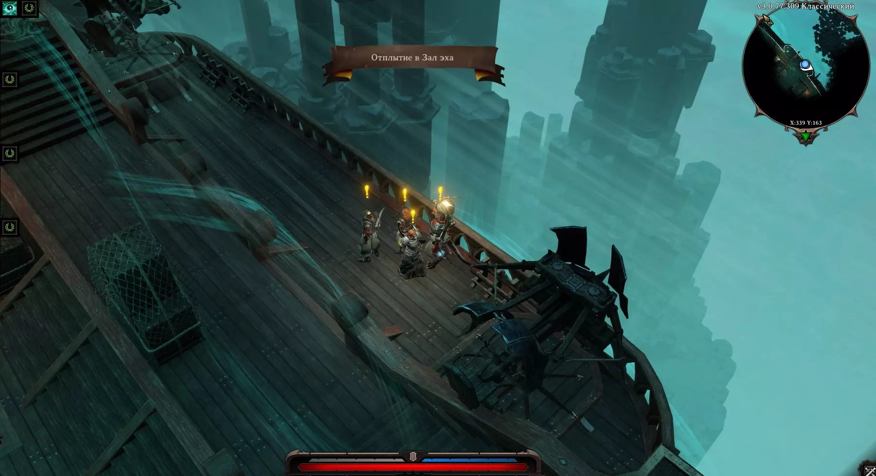 如果你的角色拥有【凤凰跳跃】技能,你可以跳到那两个人所在的另一艘船上。他们旁边的箱子里可能有一些有趣的物品。 回响殿堂 我们的伙伴会将我们传送到熟悉的回响大厅。去看看这次有什么新发现吧。
