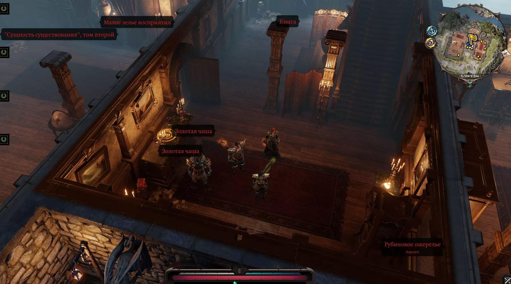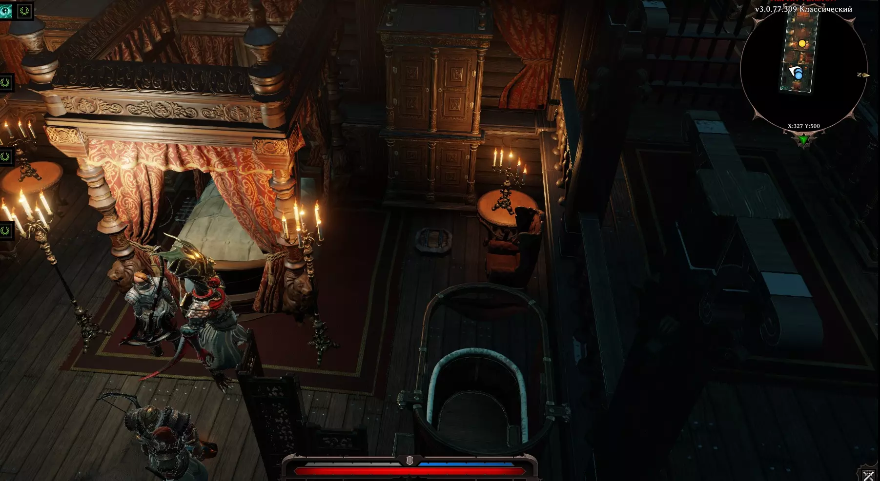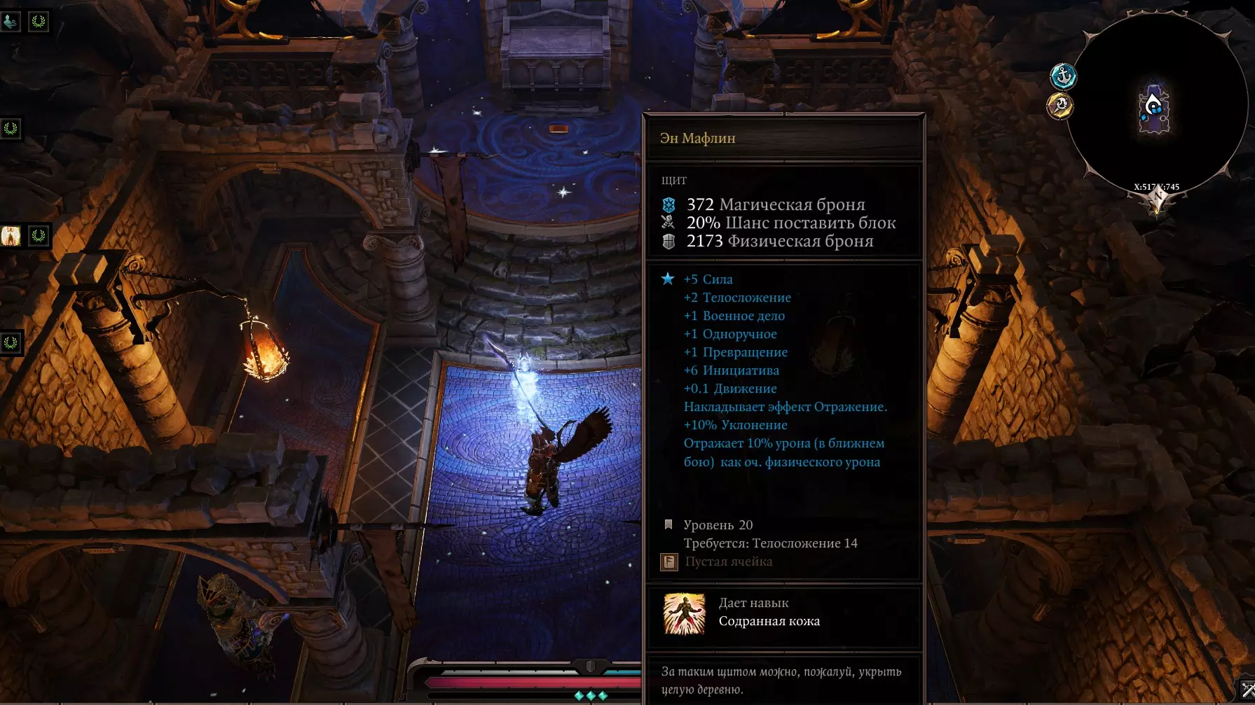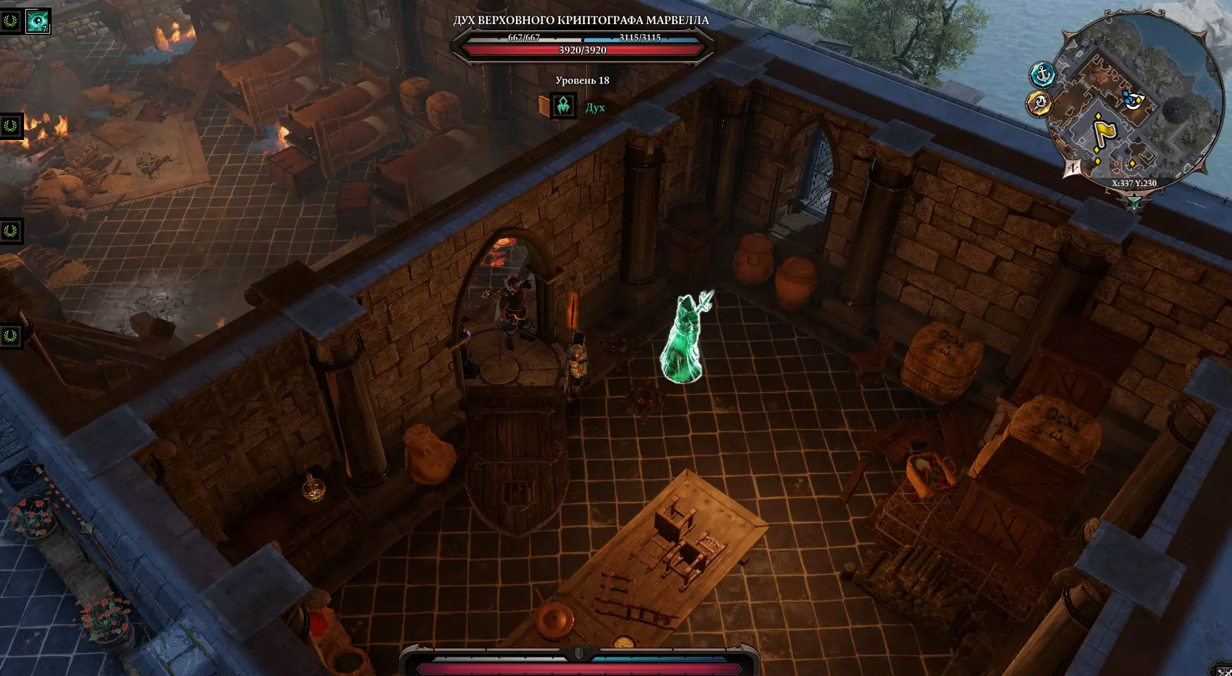 说实话:当我无意间点击祭坛后来到这个地方时,我屏住了呼吸好一会儿,这太出乎意料了,而且背景音乐一直萦绕在我耳边。 我们现在身处一个神秘之地——回声大厅。在咒语书中立刻出现了一个新的分支——【源魔法】,以及一个名为【灵感】的法术。不过,这个法术无法使用(即使不戴项链也不行)。角色身上有【灵魂视野】 buff(可以看见灵魂),所以我们去和灵魂对话。继续前进,看到一个名叫【拉里克】的灵魂,他想开始战斗,但我们安抚他并表示是和平而来。与他对话后,我们学会了【源魔法】,现在我们变强了!他还告诉我们,我们是唯一能拯救所有人的人,需要净化这个被虚空侵蚀的世界,等等之类的话。我们回来后,向伙伴们讲述了自己的旅程。 现在我们带着如此强大的魔法,前往古老遗迹,对被诅咒的杠杆施加“祝福”魔法,这样我们就能打开它了。 国王布拉卡的军械库