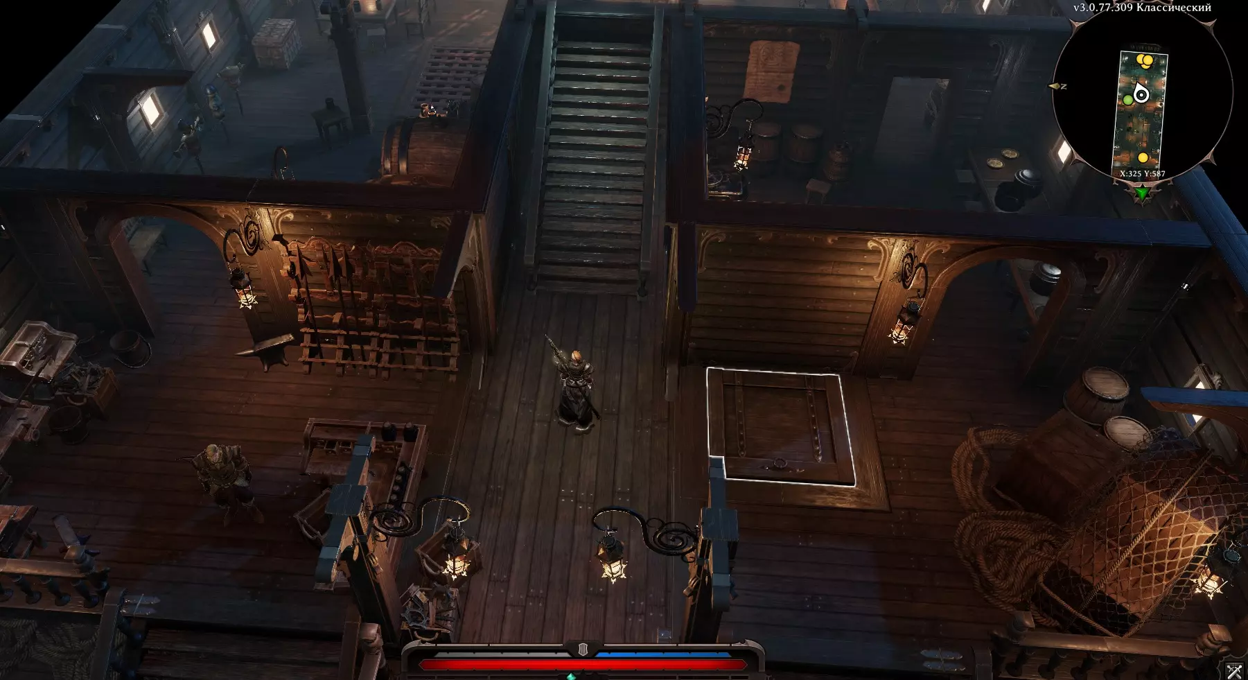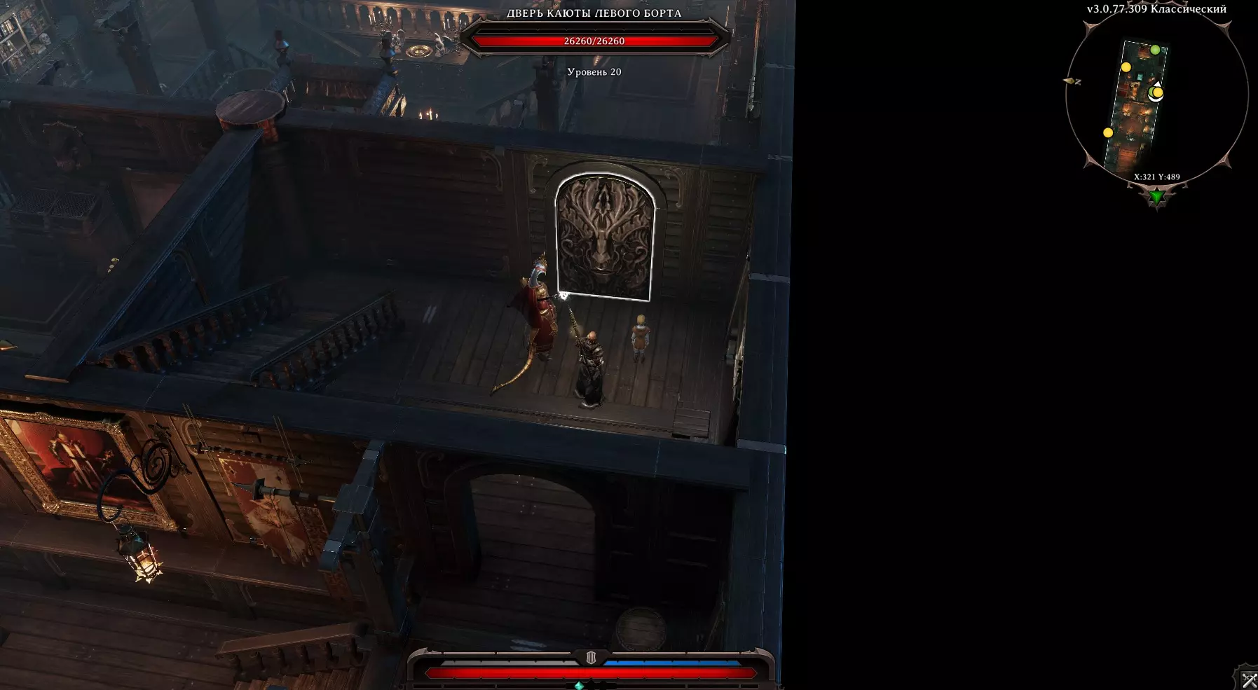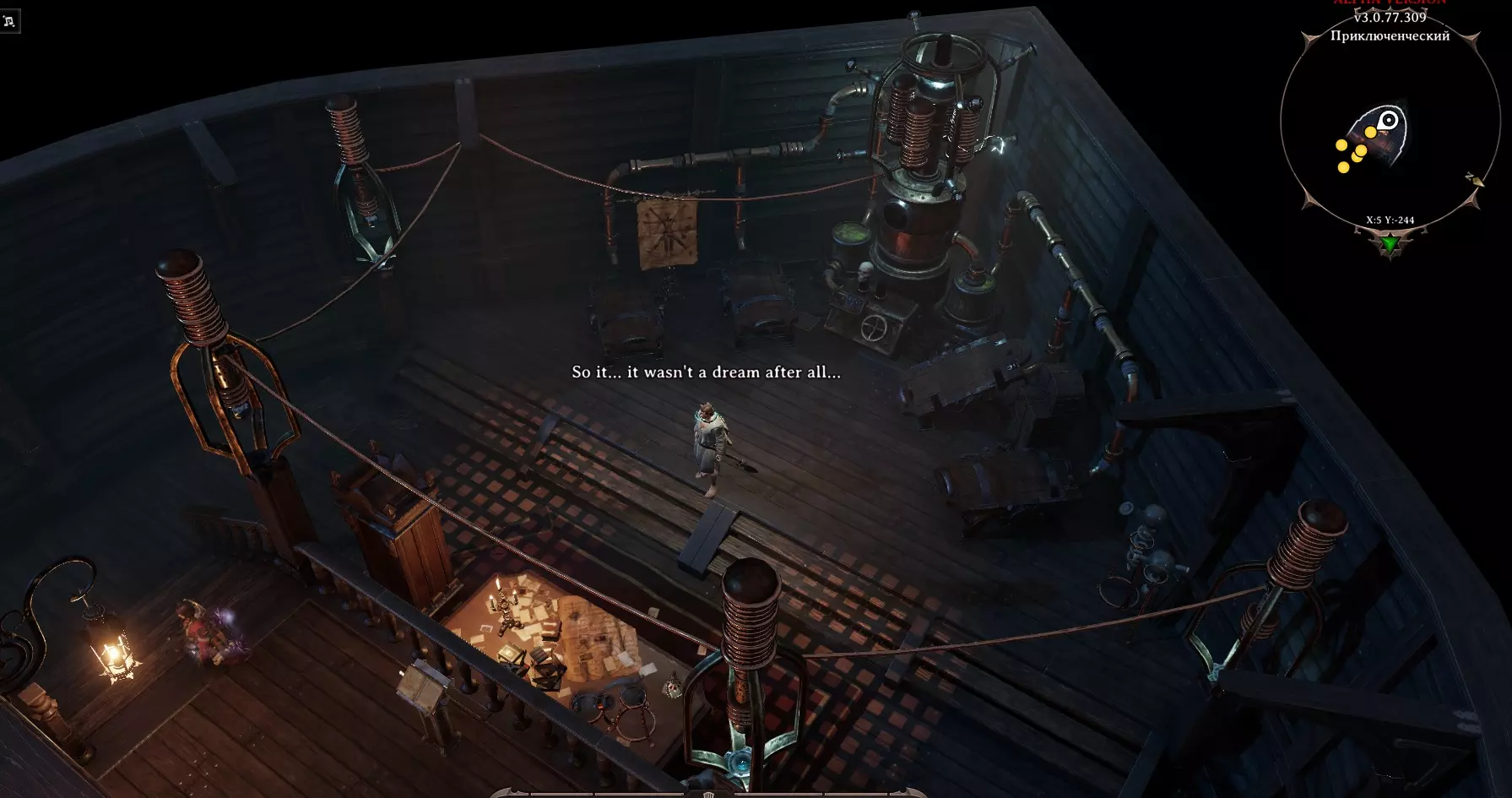 那么,我们现在在船上。我们的同伴们互相交谈后决定背叛我们,结果大家都分散了。但我们并没有灰心,开始在船上四处探索。 在甲板顶部,我们看到梅洛迪和加雷特在对话。他们正在讨论与法师们战斗的结果,并开始和我们交谈。在这次谈话的最后,他们表示船无法继续前进,需要想办法帮助他们让船重新启动。我们走,去寻找! 在甲板的另一端站着一位名叫梅芙的精灵。她告诉我们,有一个【替身】破坏了飞船,现在需要想办法处理。 前往下层甲板。 飞船:下层甲板
