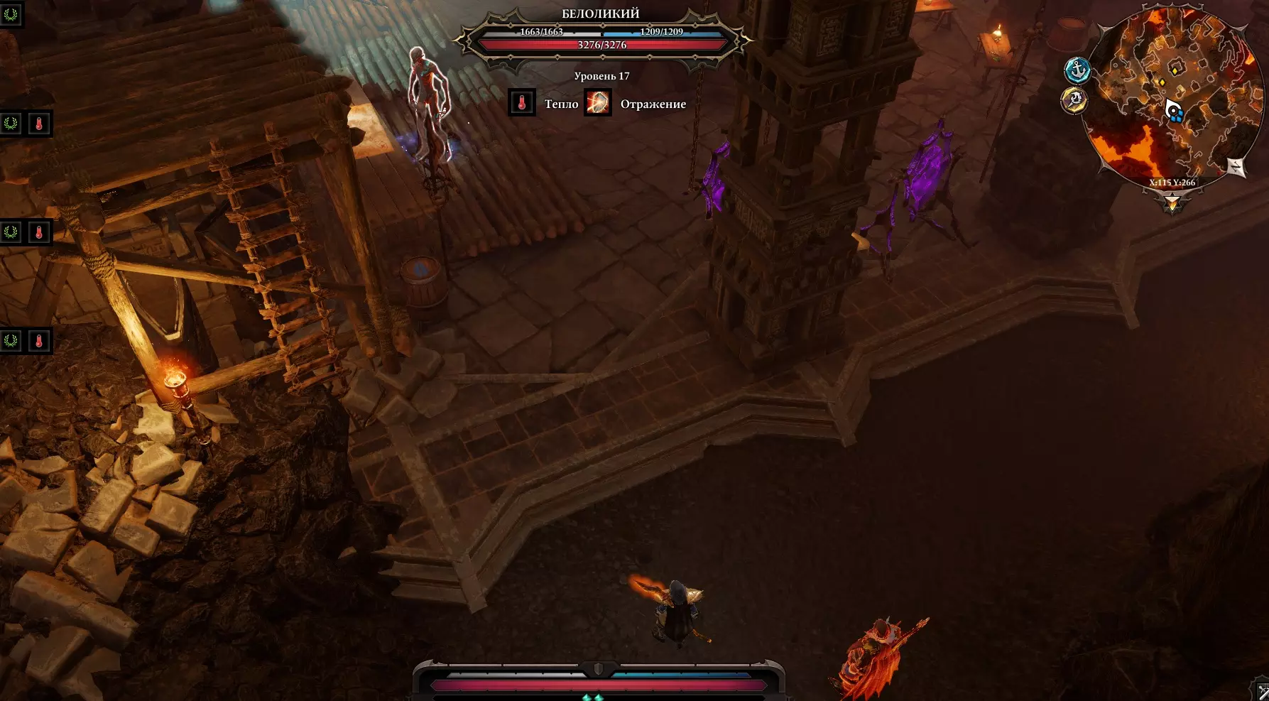 在南部海滩上放着一盏有灯灵的灯。 与他对话时选择【智力】选项,他会提出帮你实现一个愿望: 力量 - 单手剑 财富 - 昂贵的护身符 知识 - 技能书 让敌人消失 - “冰雹”卷轴 燃烧的先知 在灯灵西边的高地上有一座雕像。点燃火炬时,它们会再次熄灭。使用火焰群体技能同时点燃所有火炬。 浮木之上的阴影(续)