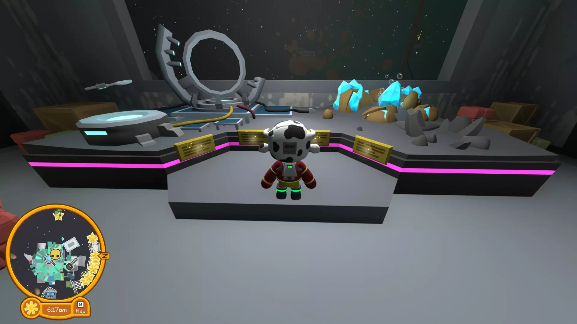 现在打破这块宝石(必定生成),拿起水晶前往电梯并乘坐电梯上去。退出任务,这样你就能获得该神器了。 神器3 前往采矿任务并开始任务。找到一块小型紫色水晶(随机生成),打破它并将其带到电梯处。然后,把它带到空间站车库,放入你在太空学员任务中放置核心的同一台机器里。 神器4 前往摇晃餐厅(地图上的盘子和餐具图标),然后走到餐厅岛台下方,靠近支撑它的助推器旁边。神器就在助推器的边缘上。 收集品3(神器顺序为从右到左) 神器1 在坠毁的宇宙飞船中找到。在你必须穿过的第一个通风口内,找到一个能量电池,并将其带到通风口出口附近的一扇门那里。那会打开外面的一扇门,里面有神器。 神器2 拉里车库旁边的小行星,就在我头顶上方的那颗。