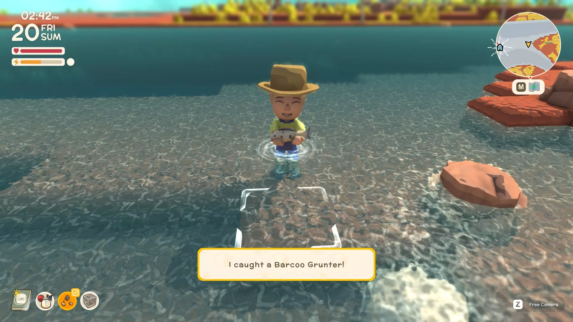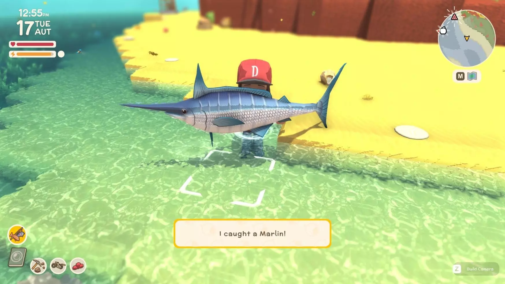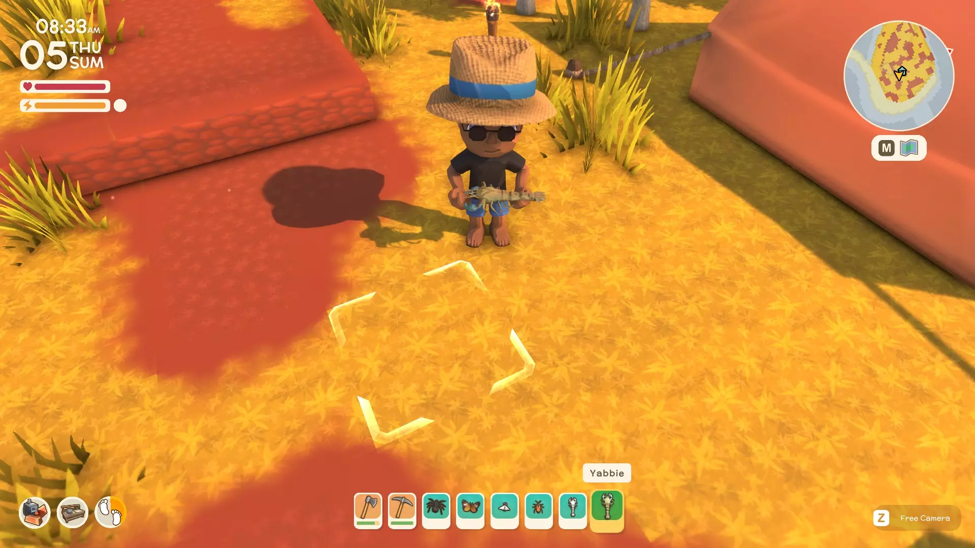 重要提示 捕捉动物时,只需让它们走进陷阱即可捕获并拾取。但是,像鳄鱼、迪格狗这类动物会挣脱陷阱,所以这有点像宝可梦游戏,你得先把它们的生命值打低,才能成功捕捉。 示例:以鳄鱼为例 动物收集点(价格) 鳄鱼 - 9600美元 迪格狗 - 4400美元 袋鼠 - 6400美元 基德纳 - 8400美元 懒火鸡 - 4200美元 姆 - 4000美元 警惕姆 - 8400美元 钓鱼及捕鱼方法 首先,你要找一个合适的钓鱼点,确保能看到周围有鱼在游动。然后你将抛出鱼线(记住按住按钮的时间越长,鱼线抛出的距离就越远)
