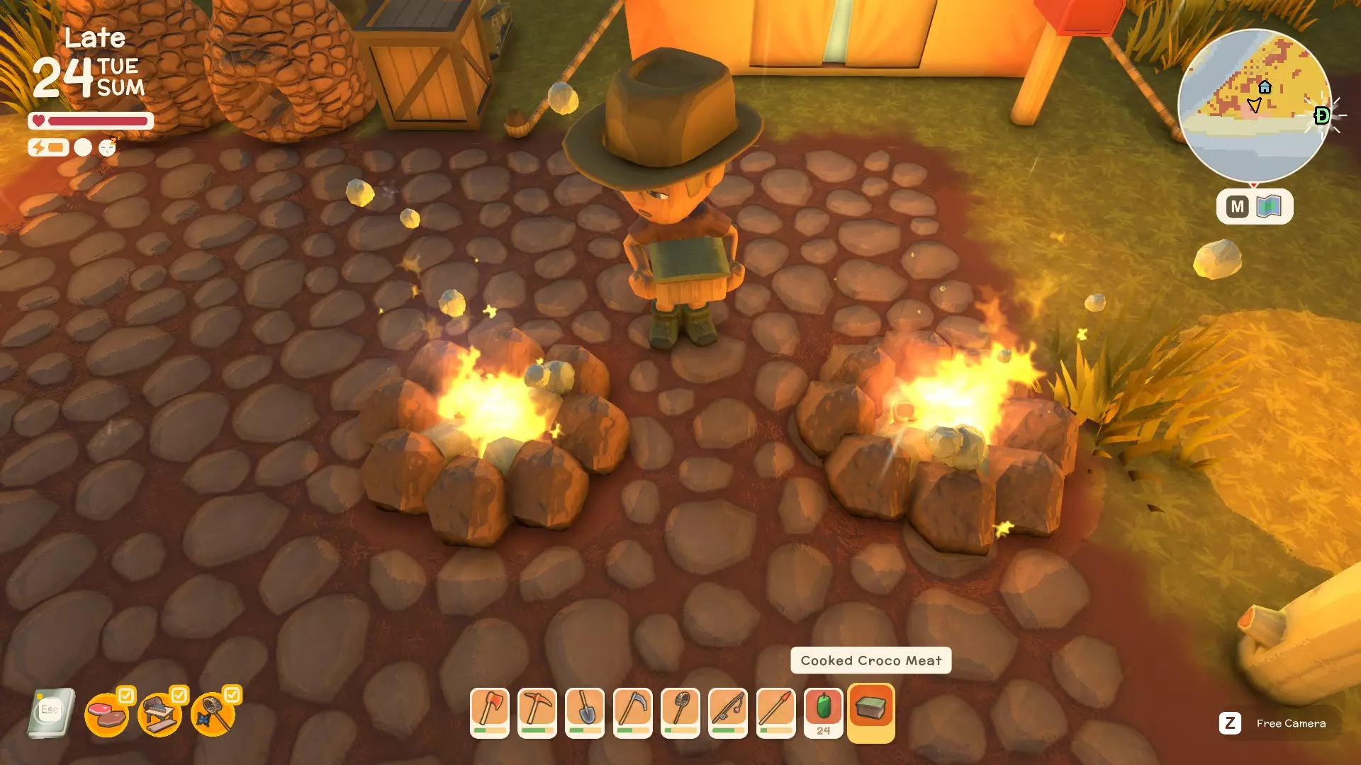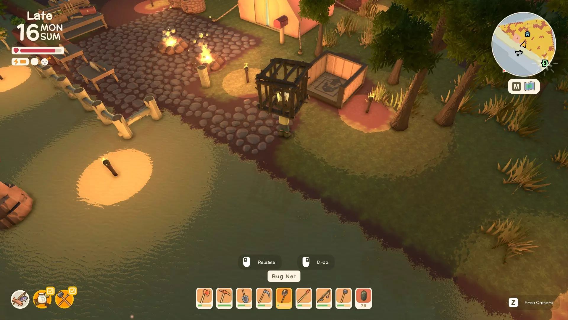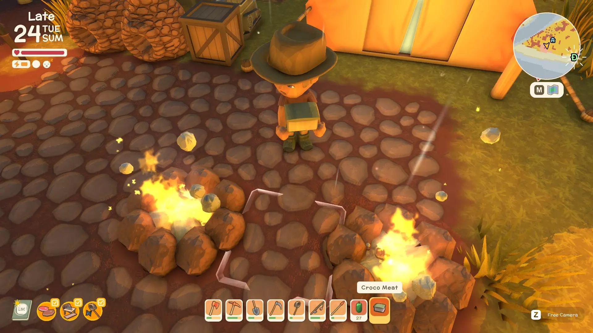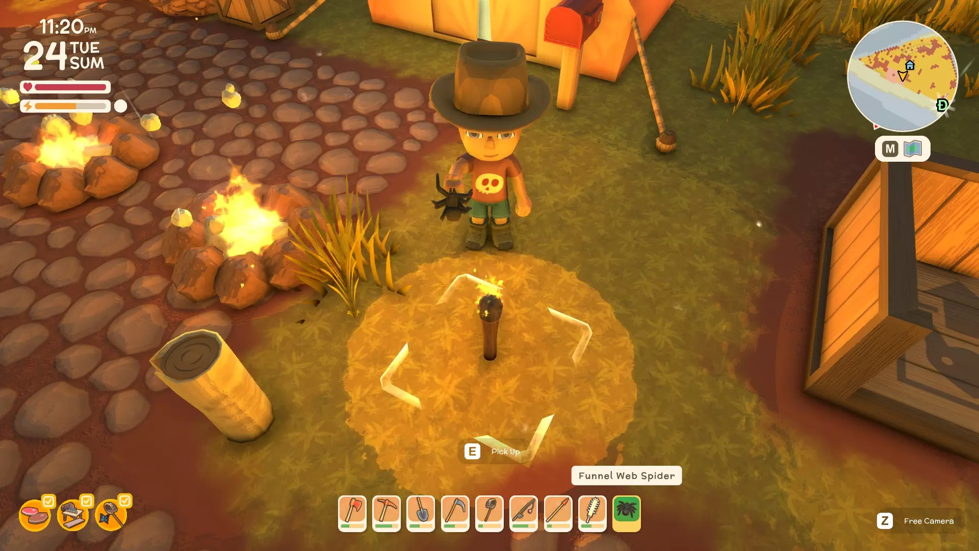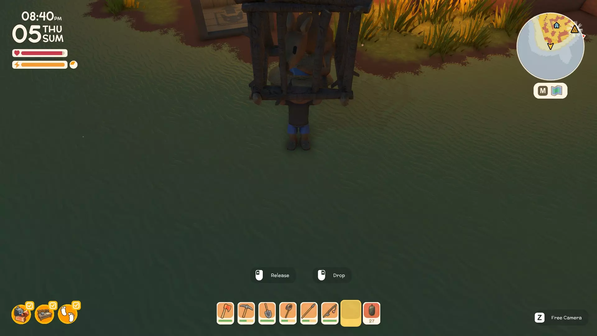 战斗所有动物类型 - 方法指南(将持续更新) 如何对抗鳄鱼或双鳄鱼 如何对抗袋鼠 如何对抗野狗(Diggo) 如何用长矛获取鸟类 如何对抗Kidna(即将推出) 如何对抗鲨鱼(即将推出) 如何对抗懒火鸡(即将推出) 如何对抗穆(大鸟)(即将推出) 如何对抗警惕的穆(大鸟)(即将推出) 在装饰花盆中种植花卉 首先,将装饰花盆放置在你选择的任何位置,放置好后放置好花箱后,确保你想种植的花已在快捷栏中。滚动到你想放置的花,将鼠标悬停在装饰花箱上并点击,即可把花种入其中,欣赏它们的美丽。现在你可以尽情发挥创意,享受打造植物天堂的乐趣。 拾取木箱及其他物品与放置新物品 你可以拾取大多数已放置的物品,但像木箱这类物品,移动前请务必先清空里面的东西。 至于放置新物品,只需将它们放入快捷栏,找到合适的位置,按喜好旋转方向,然后放置即可。希望本指南对你有所帮助,祝你度过愉快的一天! 收集贝壳——前期赚钱方法 共有7种不同类型的贝壳可供收集,这是轻松起步赚钱的简单方法。 如何烹饪肉类和水果 从营火开始 烹饪肉类