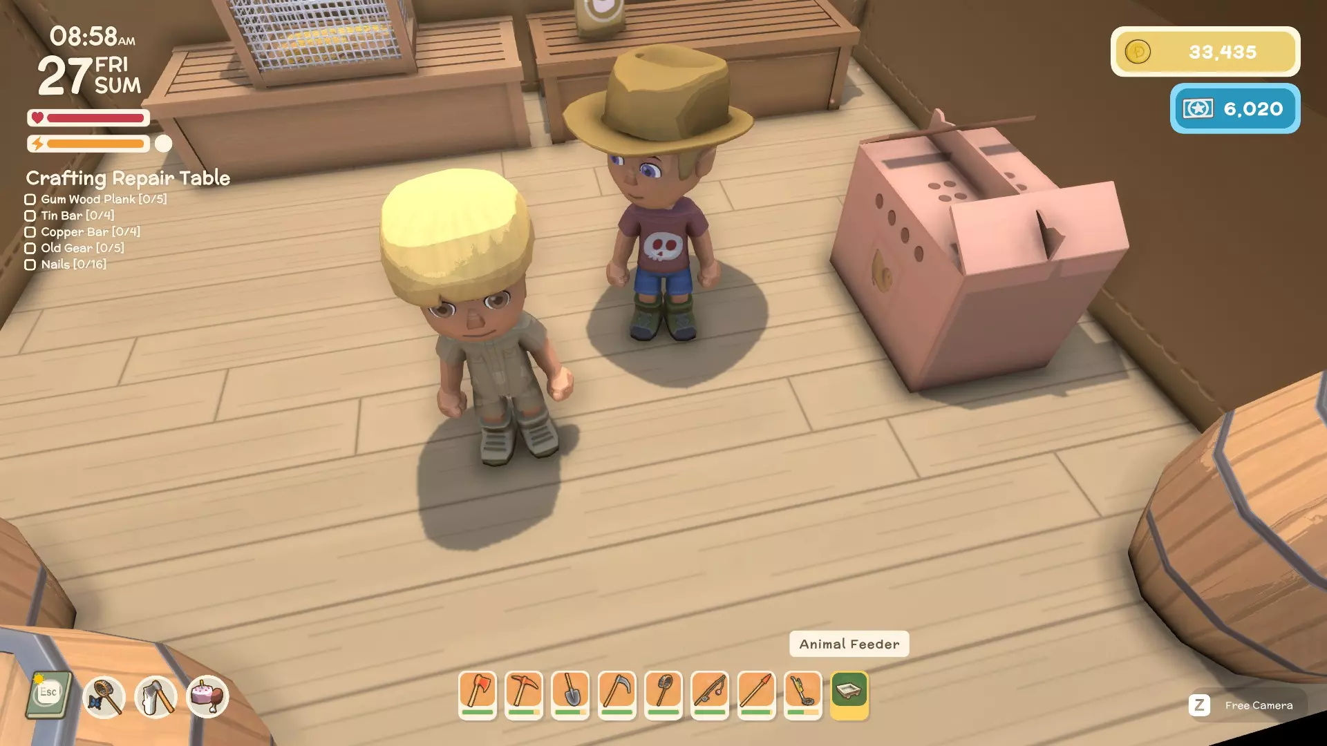 可制作的可放置物品(部分物品可能列在制作工作站、家具分类下) 动物围栏 - 价格未知(用于养殖 - 普利普、沃姆巴特) 鸟舍 - 6,690美元(用于养殖 - 鸡) 简易动物陷阱 - 2,131美元(用于狩猎) 手推车 - 价格未知(用于搬运泥土和其他物品) 风车 - 价格未知(加速工作站的生产速度) 木箱 - 754美元(用于物品存储) 木宝箱 - 2,200美元